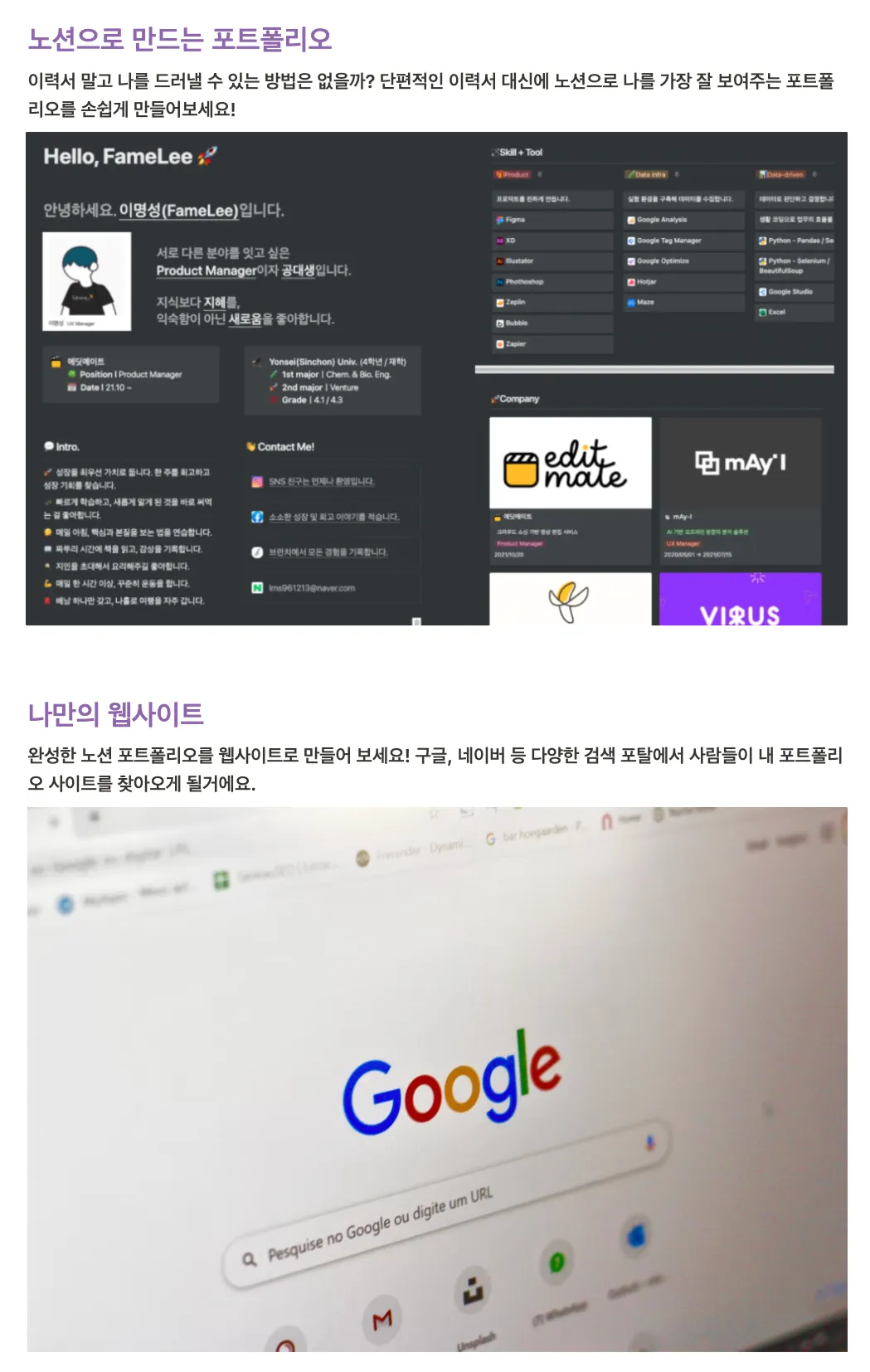 빠른 실험을 위해 노션을 활용해 웹사이트 제작했습니다.