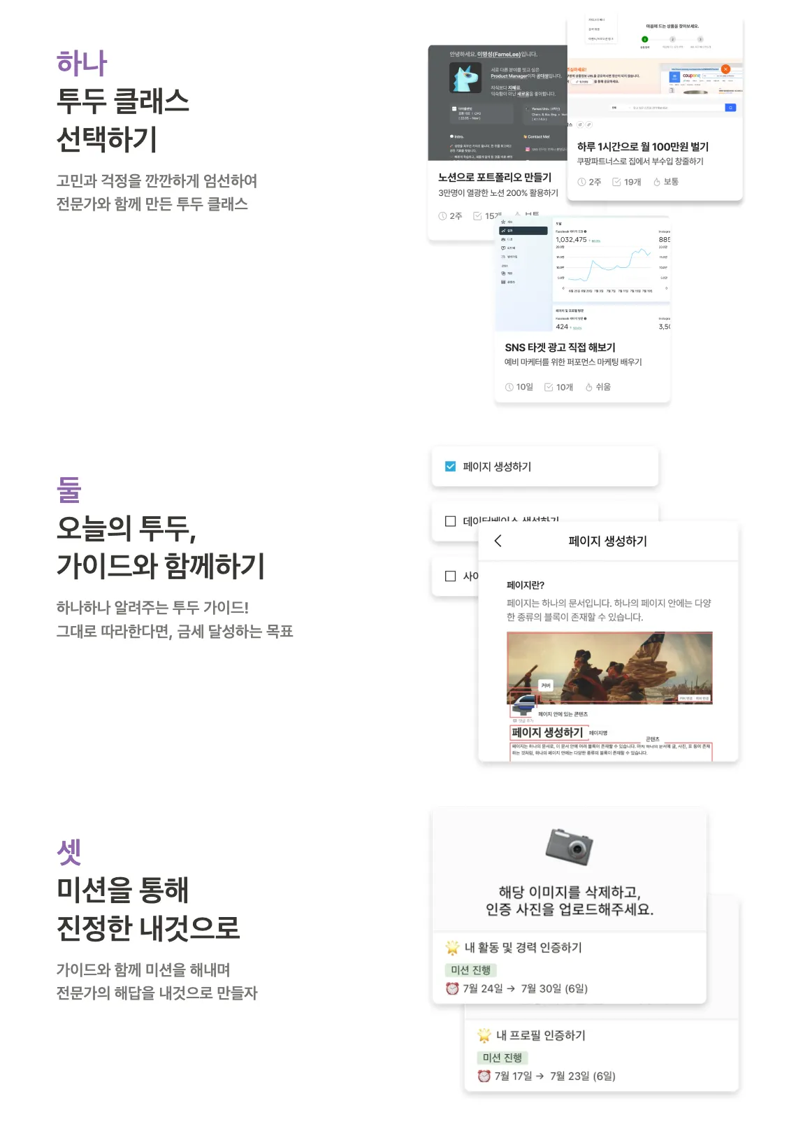 "미션"을 인증해야지, 그 다음 세션이 열린다. “데드라인” 안에 “미션”을 인증하지 않으면, 클래스는 더 이상 학습할 수 없게 된다.