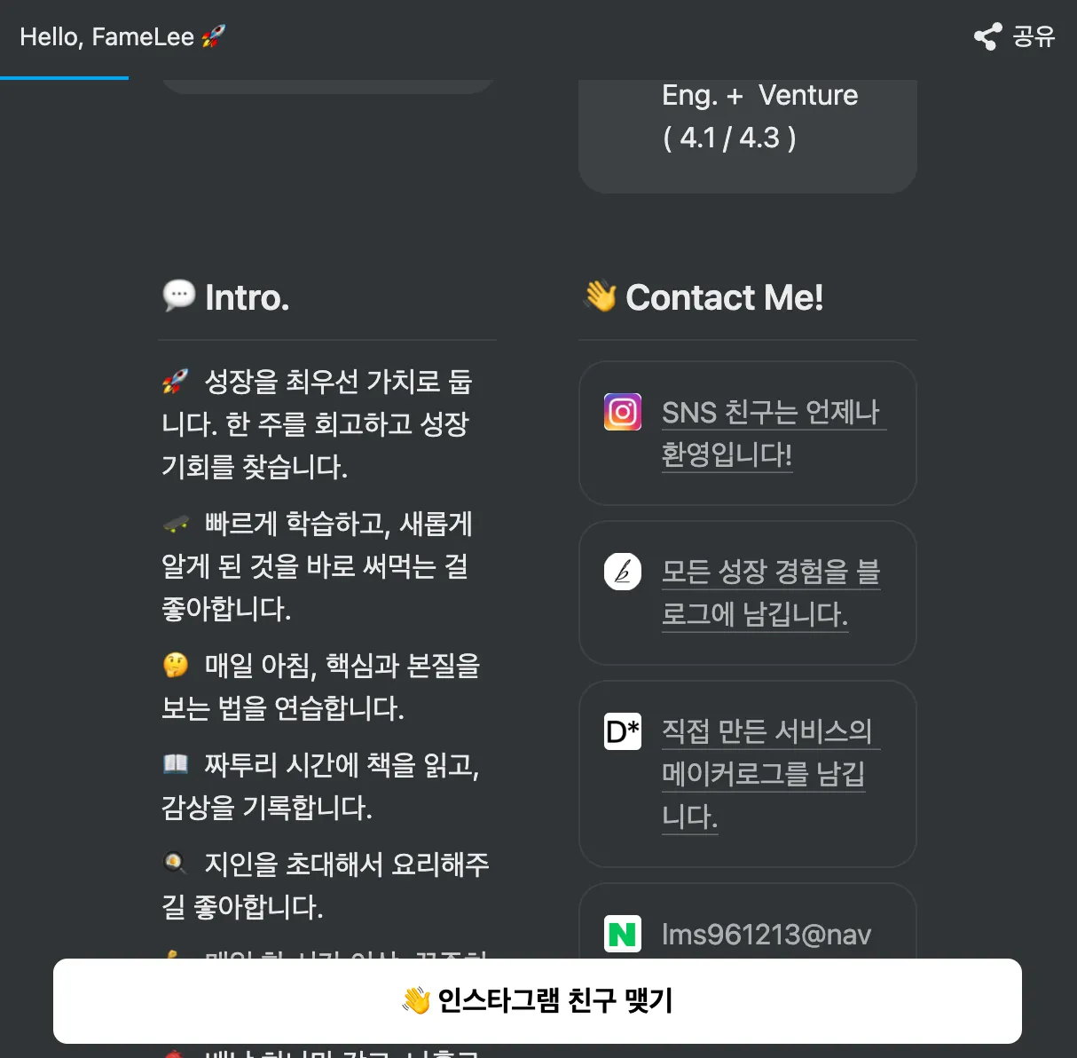 포트폴리오 사이트에 자신의 SNS 링크로 바로 이동 가능한 CTA 버튼 삽입하기