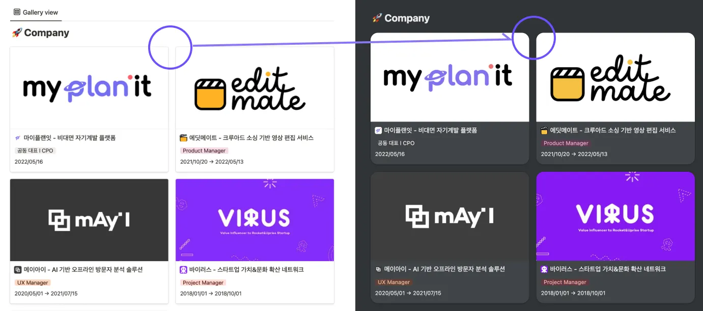 노션 페이지에 있는 이미지 블록, 콜아웃 블록, 갤러리 및 보드 데이터베이스의 모서리를 둥글게 만들기