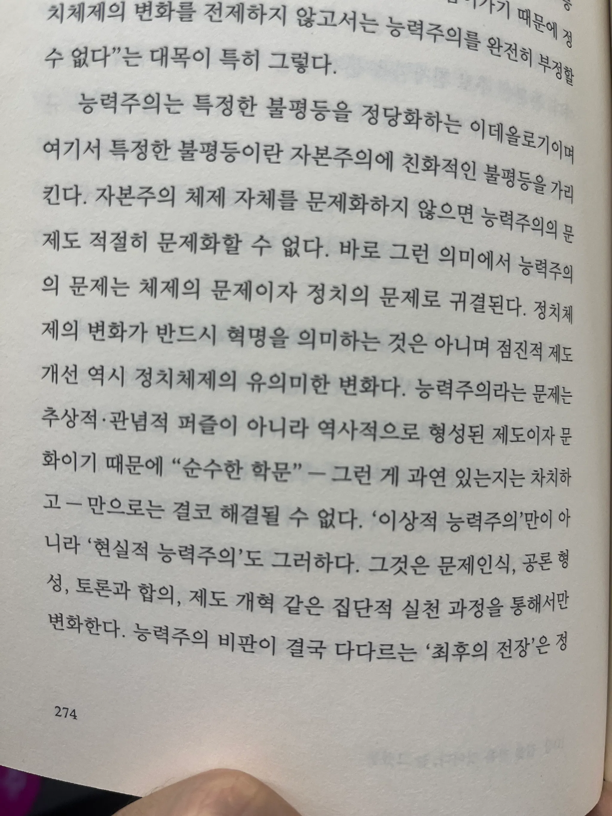 자본주의 체제 자체를 문제화하지 않으면 능력주의의 문제도 적절히 문제화할 수 없다