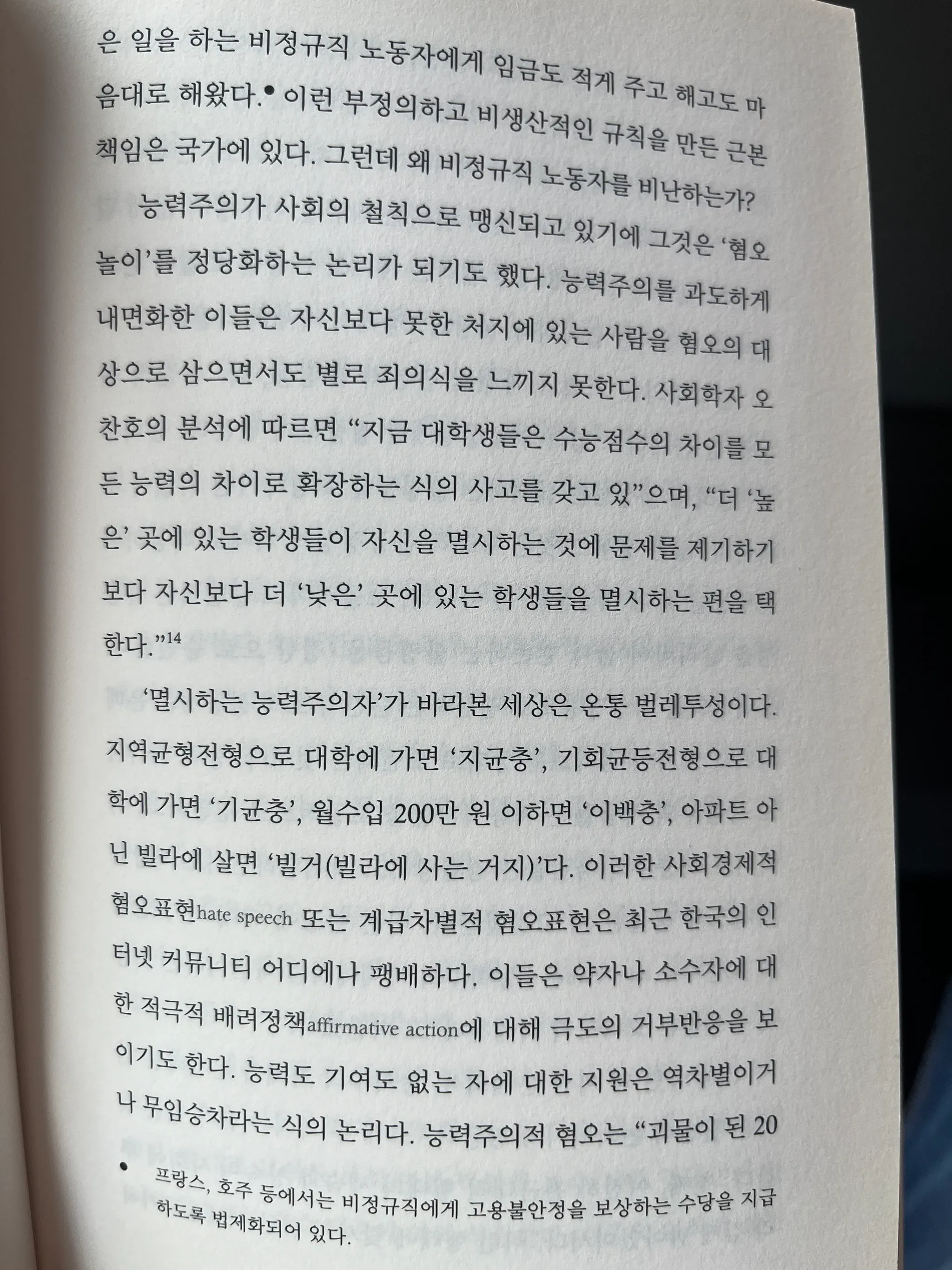 능력주의가 사회의 철칙으로 맹신되고 있기에 그것은 '혐오 놀이'를 정당화하는 논리가 되기도 했다.