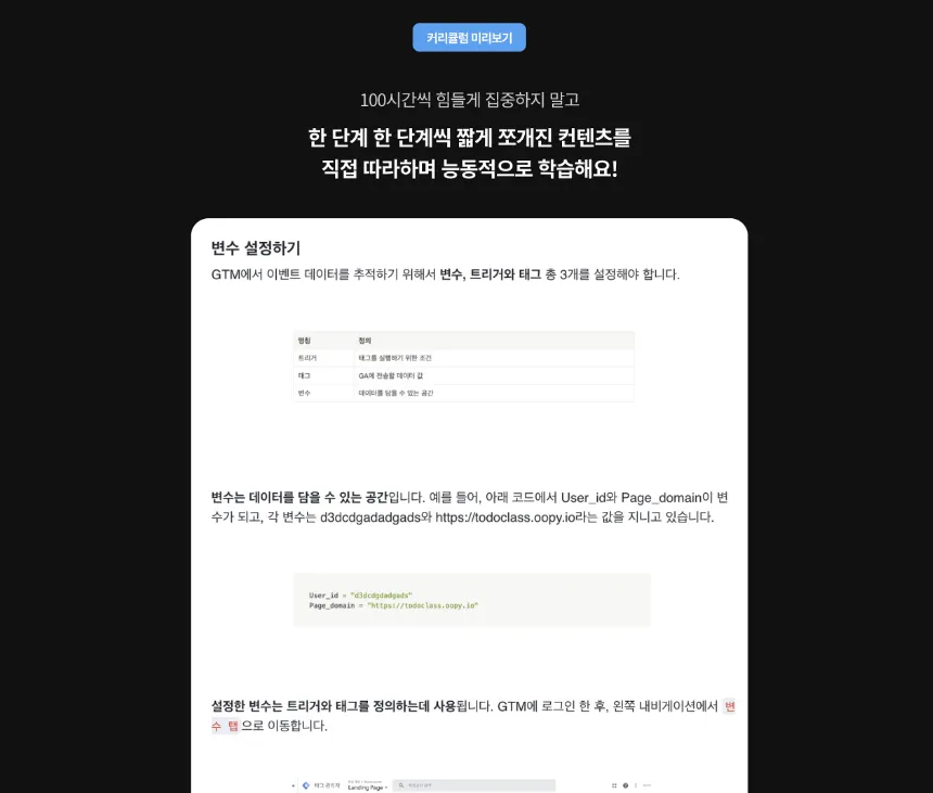 하지만, 기존 상세 페이지는 투두몰의 핵심 가치를 직관적으로 전달하지 못하며, 그 대신에 커리큘럼이나 제작자 같이 콘텐츠 자체적인 내용에 더 집중 됨을 깨달았습니다.
