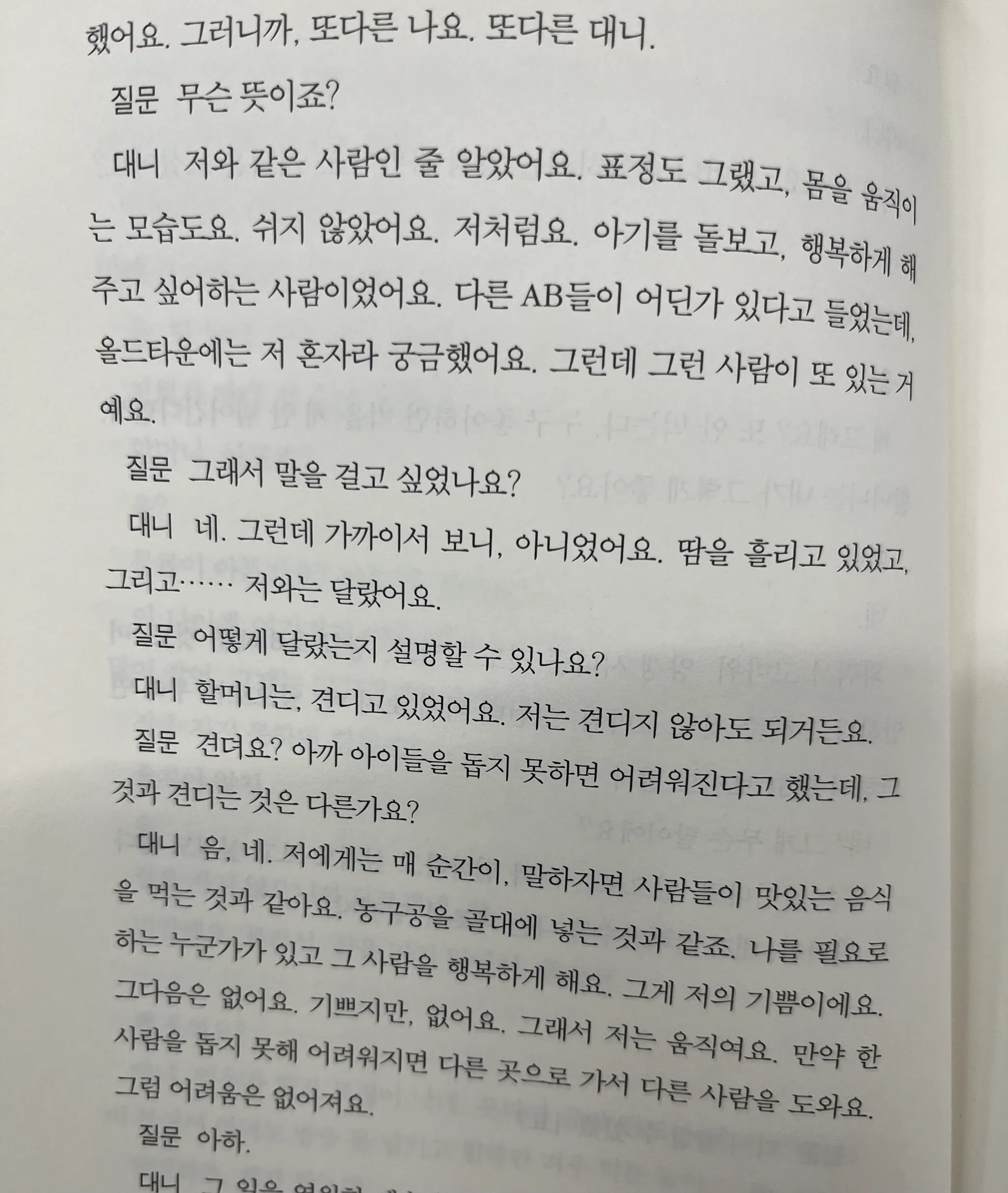 할머니는, 견디고 있었어요. 저는 견디지 않아도 되거든요.
