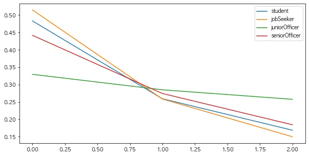 각 세그먼트의 세션 별 완주율 감소폭을 확인해보니, 주니어 직장인이 가장 꾸준하게 학습을 이어가는 걸 확인할 수 있었습니다.