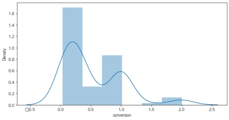 클래스의 각 일 별 구매 전환율을 Historgram(a.k.a 분포도)으로 집계해보니 전환율은 3%, 10%, 20%에서 Peak를 이루고 있는 걸 확인했습니다.