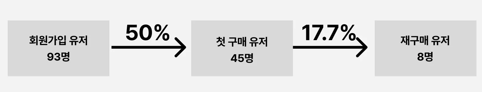 회원가입 유저 중에서 50%가 클래스를 구매했고, 이 중에서 17.7% 유저가 클래스를 재구매한 걸 확인했습니다.