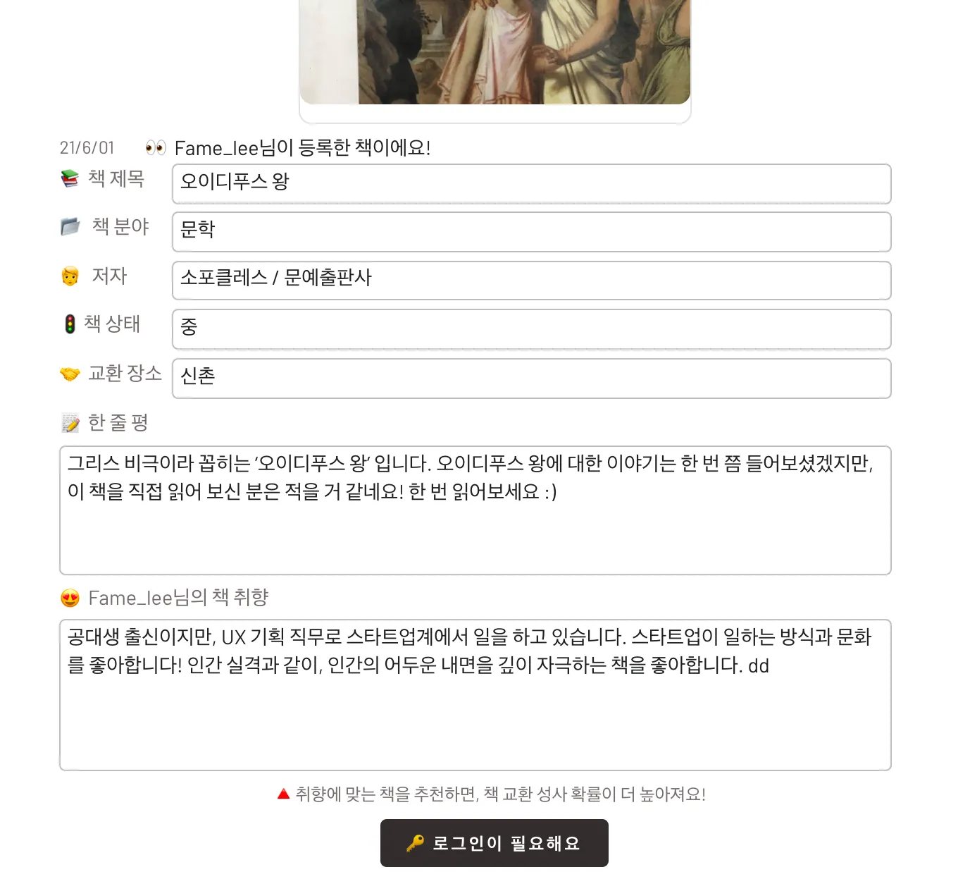 책 정보를 보고, 해당 책을 교환 신청하기 위해선 회원가입을 해야 함