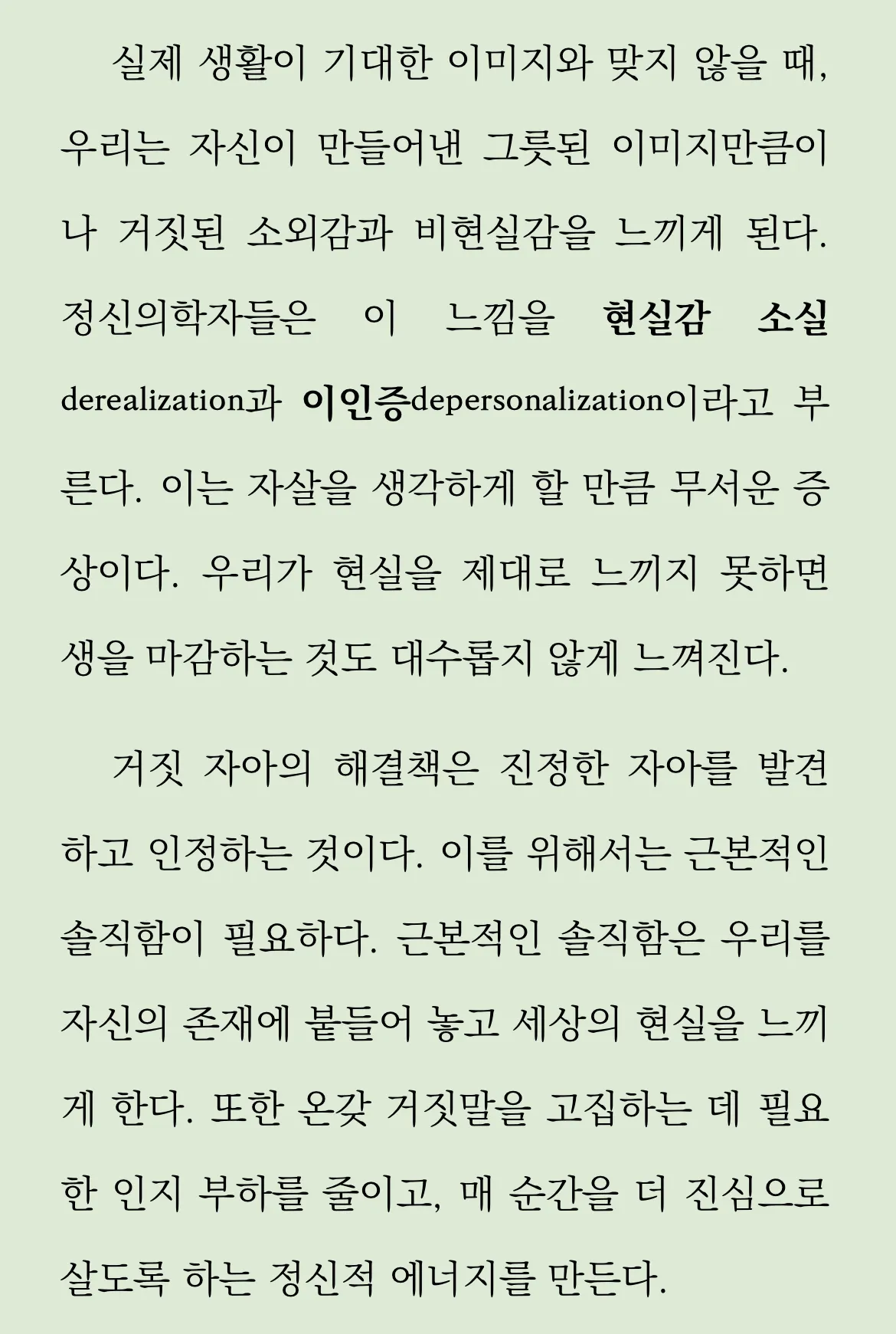 실제 생활이 기대한 이미지와 맞지 않을 때, 우리는 자신이 만들어낸 그릇된 이미지만큼이나 거짓된 소외감과 비현실감을 느끼게 된다.