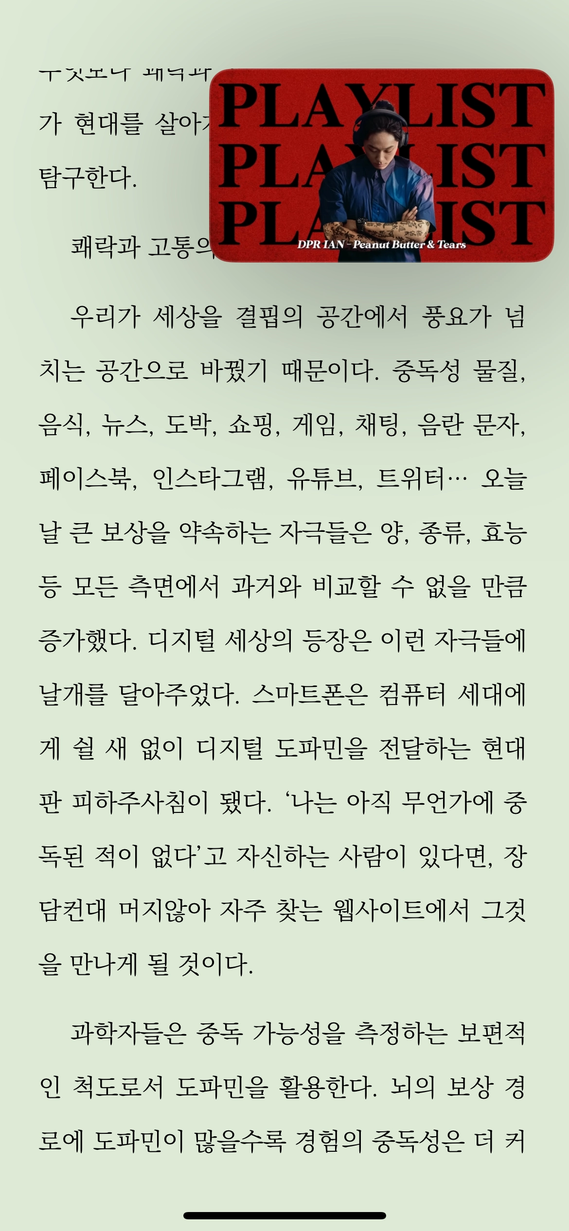 중독을 일으키는 가장 큰 요소는 접근성이다. 대상에 얼마나 쉽게 접근할 수 있는지에 따리, 그 대상에 중독될 확률도 급격히 증가한다. 현시대의 우리는 중독에 가장 취약한 시대에 살고 있다.