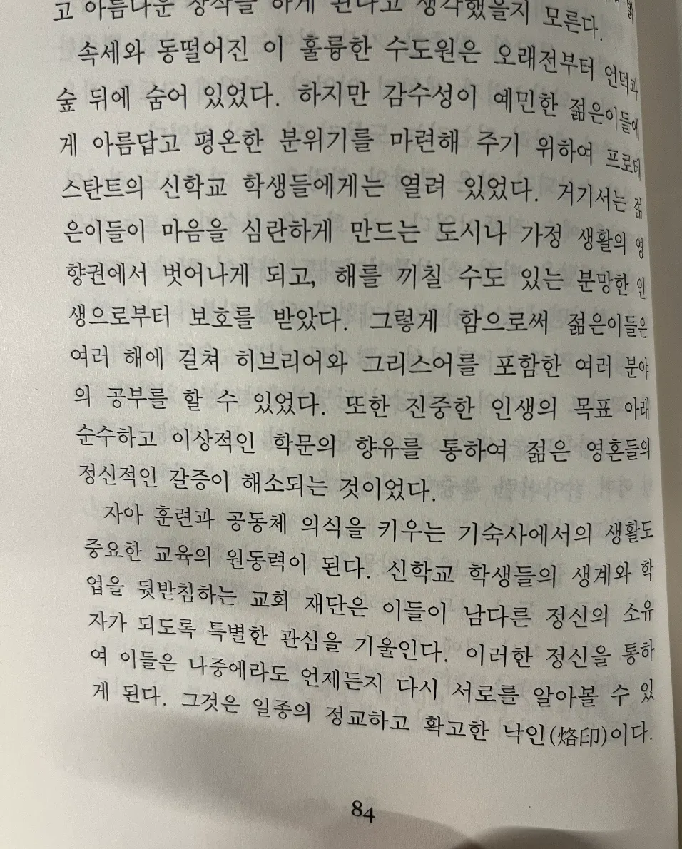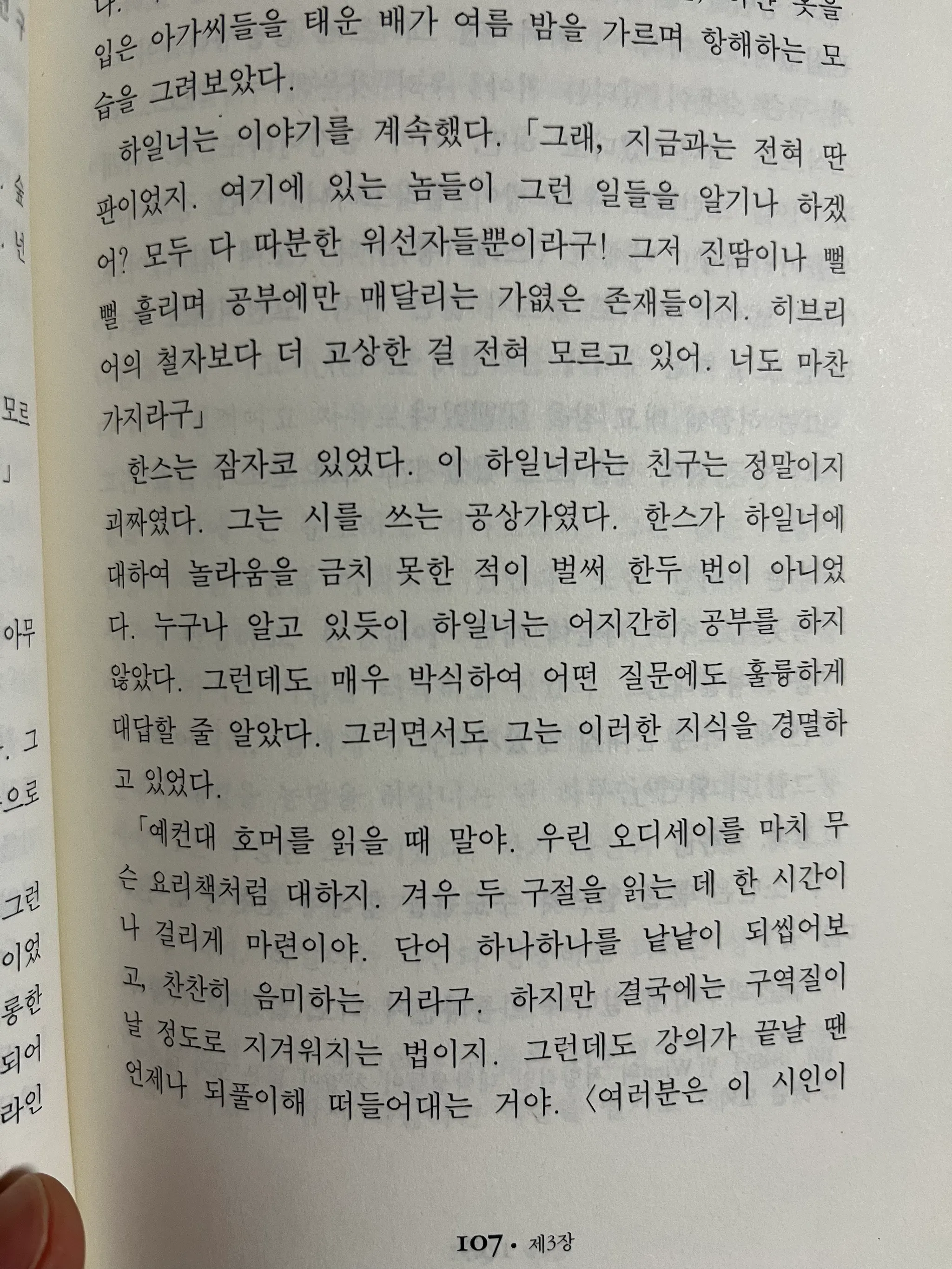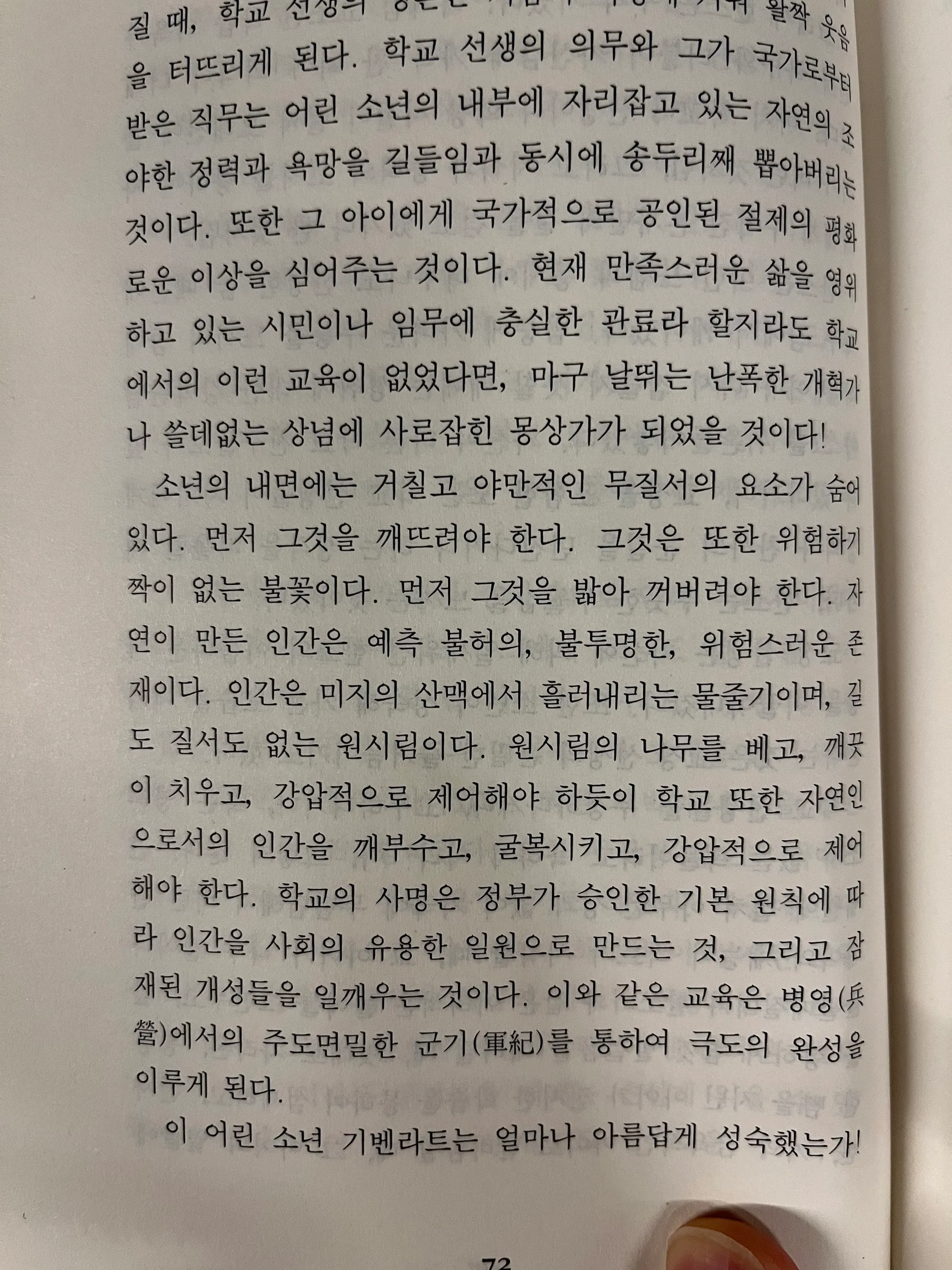 다만, 작중에서는 어린 아이들에게 지식만을 지나치게 강요한다. 어른들에게 중요한 건 히브리어, 그리스어 등에 대한 것 뿐이다. 진정한 교육자의 상은 무엇일까? 적어도 지식과 지혜를 모두 주도록 노력하는 사람이지 않을까?