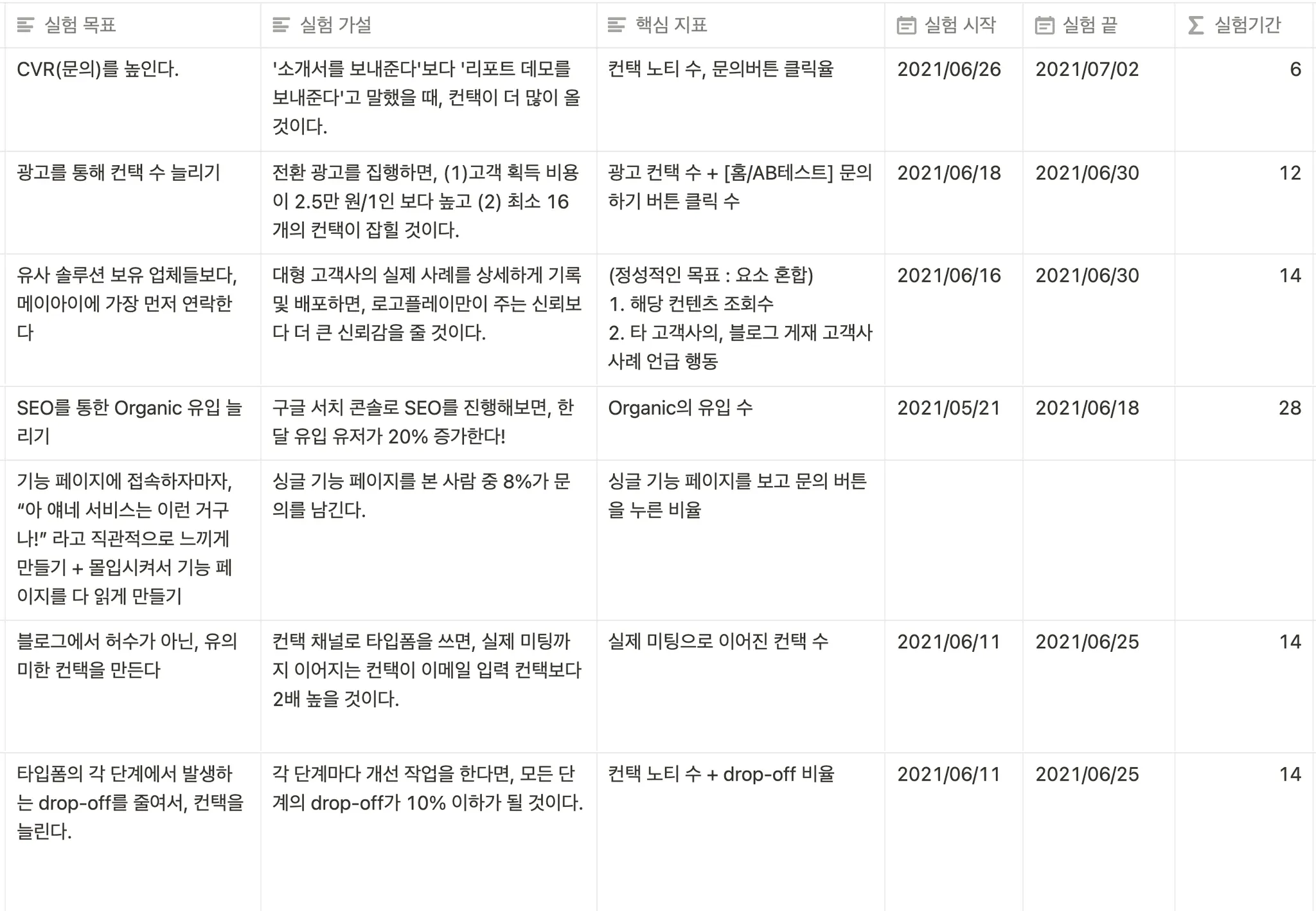 매 주마다 실험을 통해 잠재 고객의 반응을 데이터로 확인하고, 고객 컨택율을 개선시켰습니다.