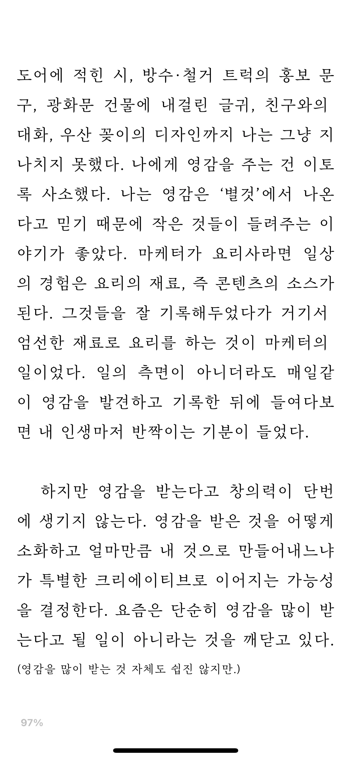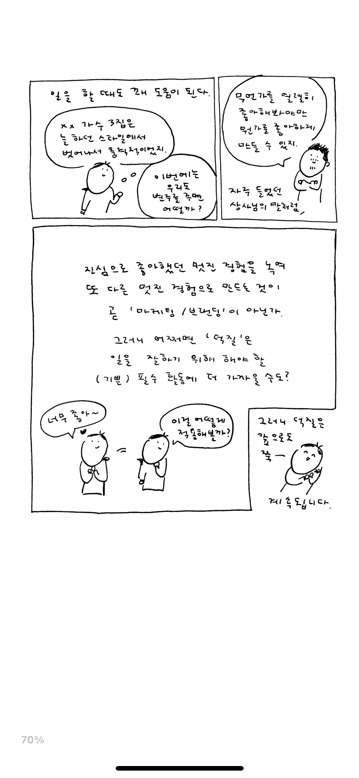 내가 좋아하는 것을 알고 있는 것 더 나아가, 좋아하는 것을 따르는 것. 이만큼 멋진 삶이 있을까? 좀 더 나다움을 실천하고 싶다. 나다움이 무엇인지 더 정제하고, 이를 실현해 진정한 나다움에 도달하고 싶다.