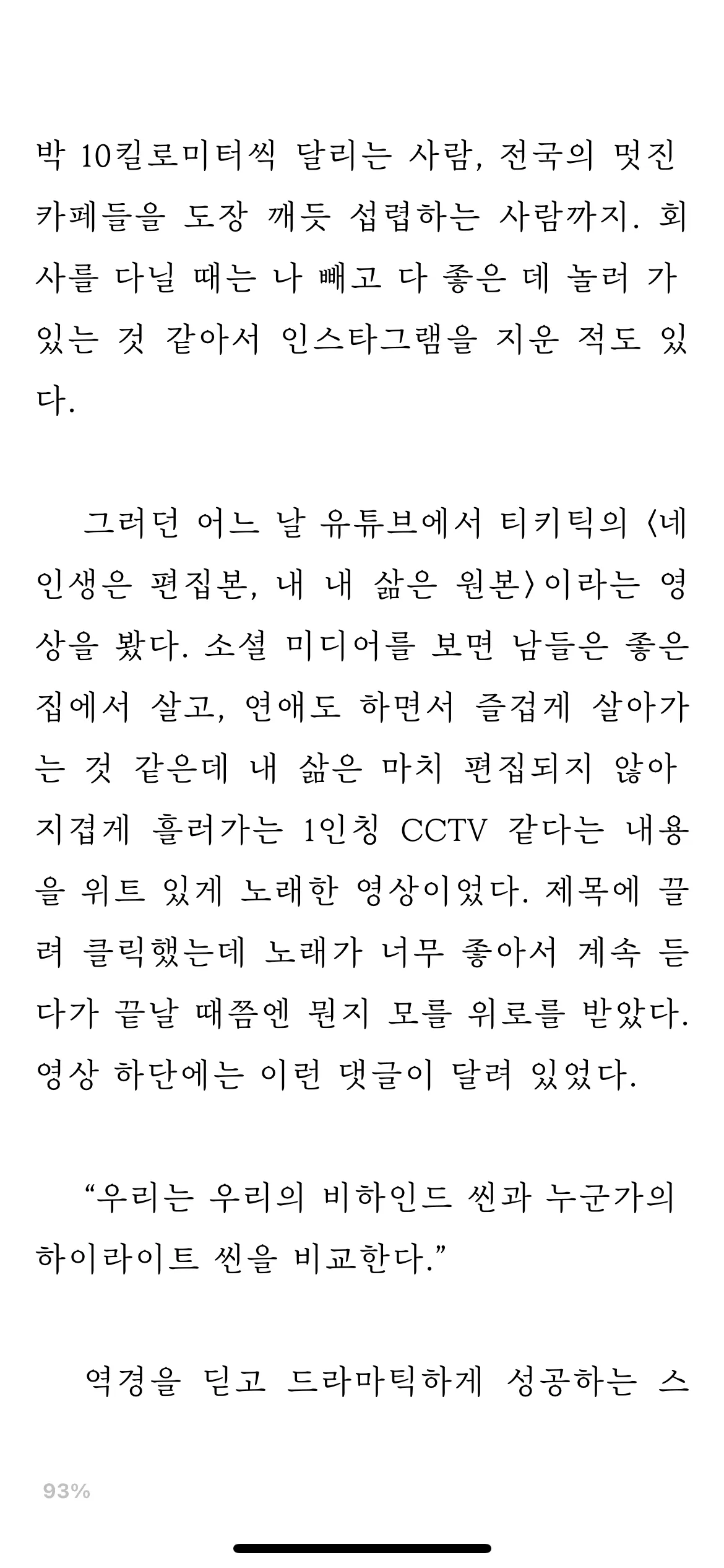 “우리는 우리의 비하인드 씬과 누군가의 하이트라이트 씬을 비교한다.” 꽤나 인상적인 문구다.
