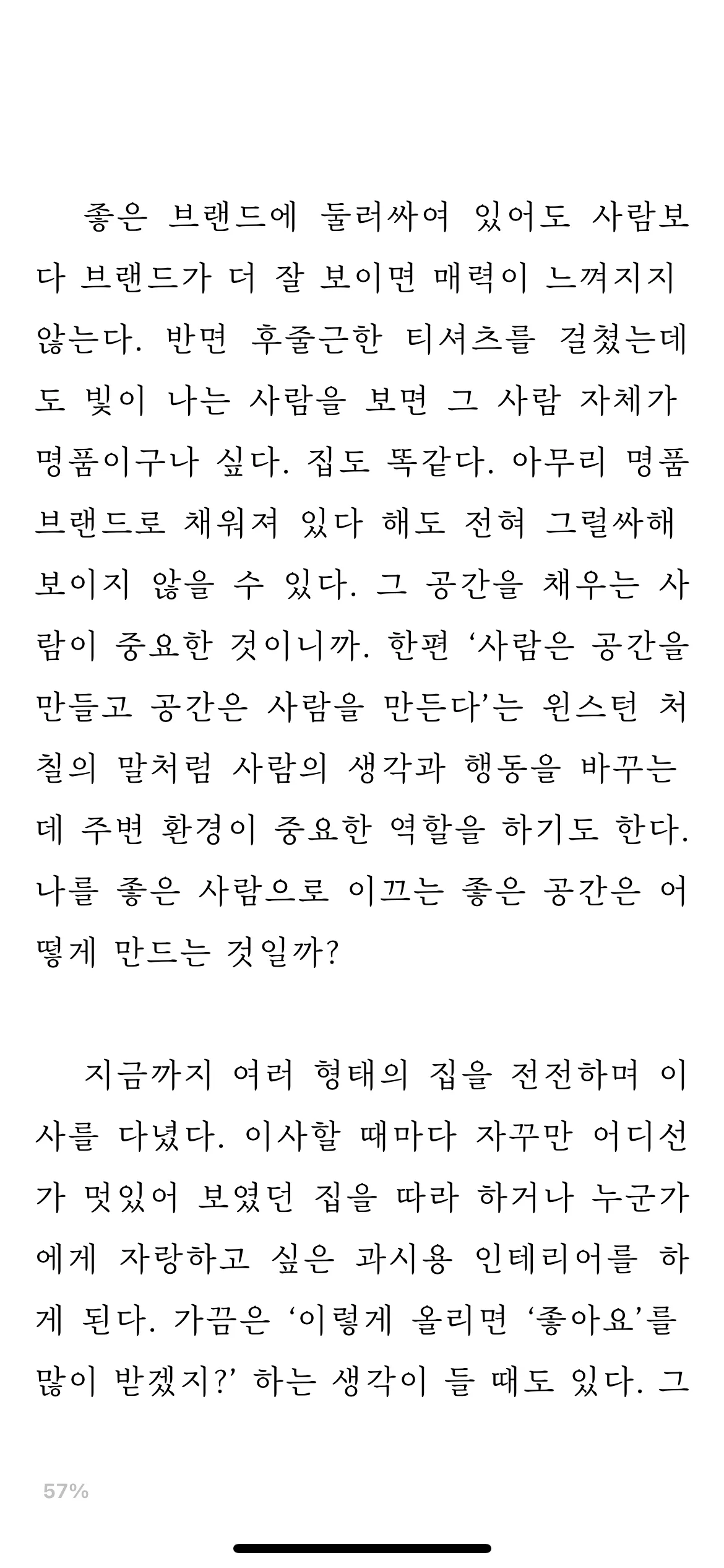 사람은 공간을 만들고, 공간은 사람을 만든다. 처칠이 언급한 “공간”은 많은 의미를 내포한다. 책상, 의자 등의 물리적 공갘을 넘어서 습관, 분위기, 마인드셋 등 인식적 공간까지 포함한다. 나는 어떤 공간 속에서 살고 있는가? 현재 있는 공간은 내가 바라는 사람을 만드는 공간일까?