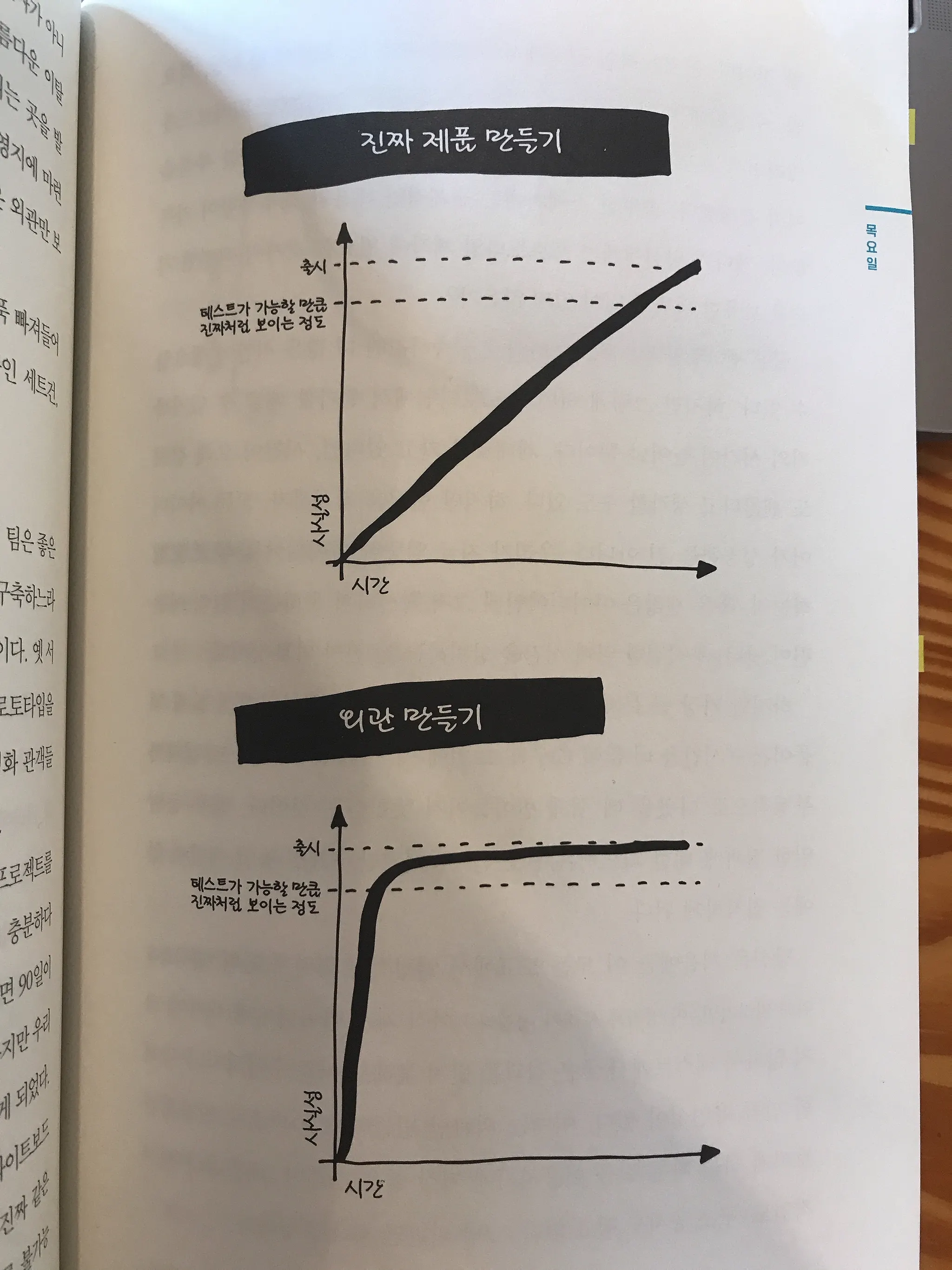 프로토 타입을 최대한 진짜 같게 만들어야 하는 이유도 이 때문이다. 대상이 구체적일수록, 고객은 그 대상에 더 집중하게 된다. 아이디어 노트를 봤을 때, 제품의 구체적 모습을 그리기 위해 사용된 정신적 에너지가, 이제 프로토 타입의 평가에 쏟아지게 된다. 즉, 프로토 타입은 서로 다른 고객이 동일한 제품을 보게 만들고, 그 제품의 평가에 더 집중하게 만드는 유일한 수단이다.