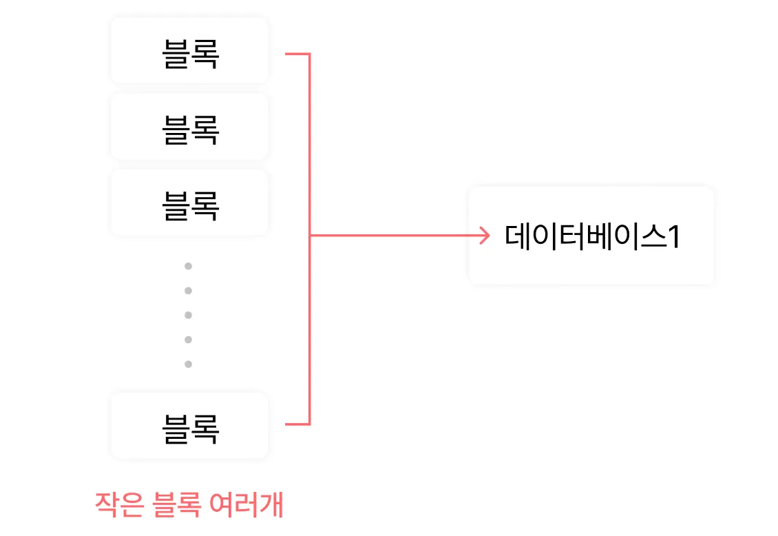 데이터베이스는 다수의 페이지 블록 집합체입니다. 1개의 데이터베이스는 여러 개의 페이지 블록으로 구성됩니다.