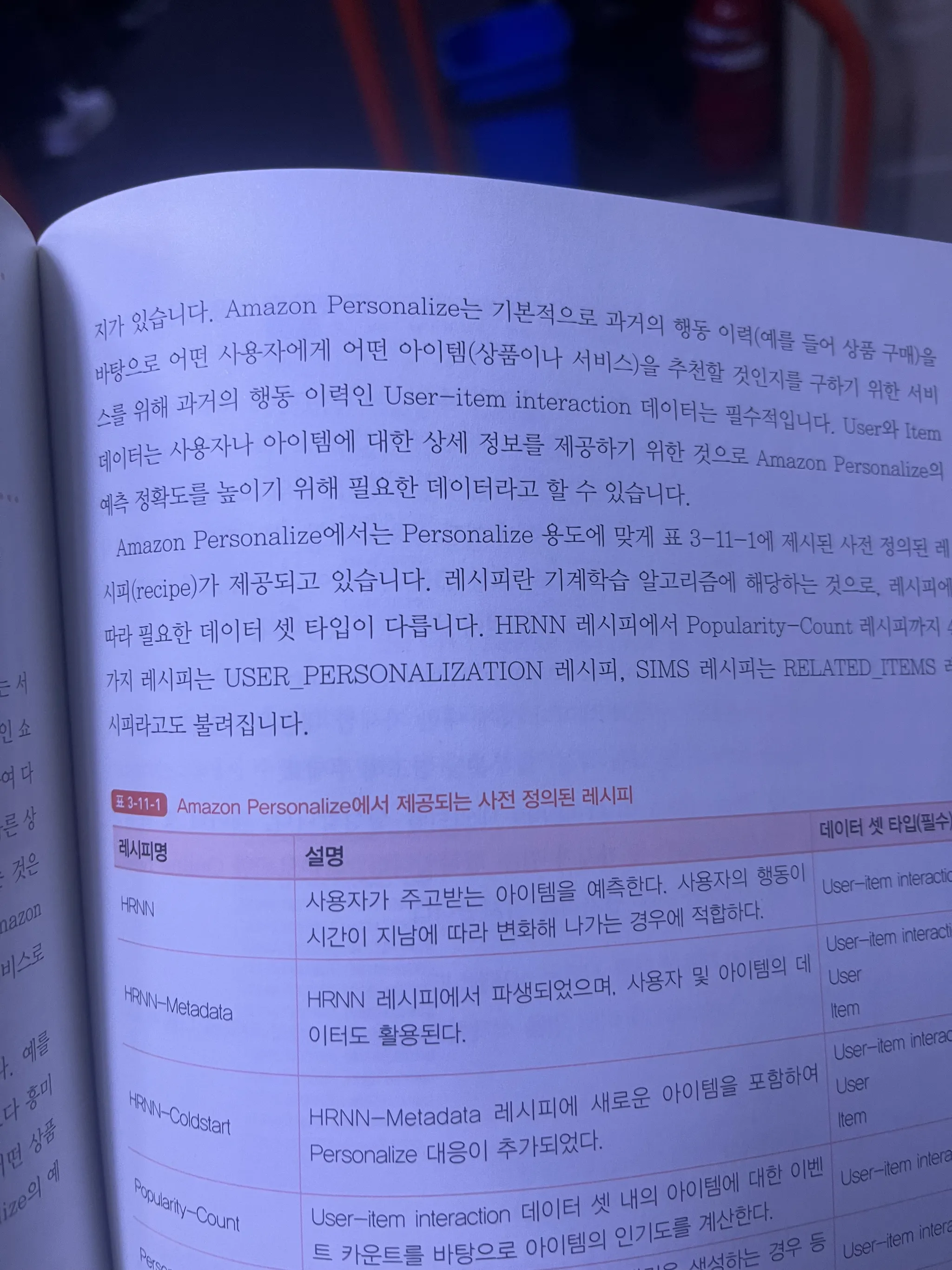 AWS의 추천 알고리즘 모델에서 사용되는 필수 데이터 타입은 user id, item id 그리고 user-interaction id 다. Intraction의 범주를 어떻게 정의하고, 상품 조회, 체류도, 구매 등의 가중치를 어떻게 설정하느냐에 따라서도 결과가 더 달라지지 않을까!