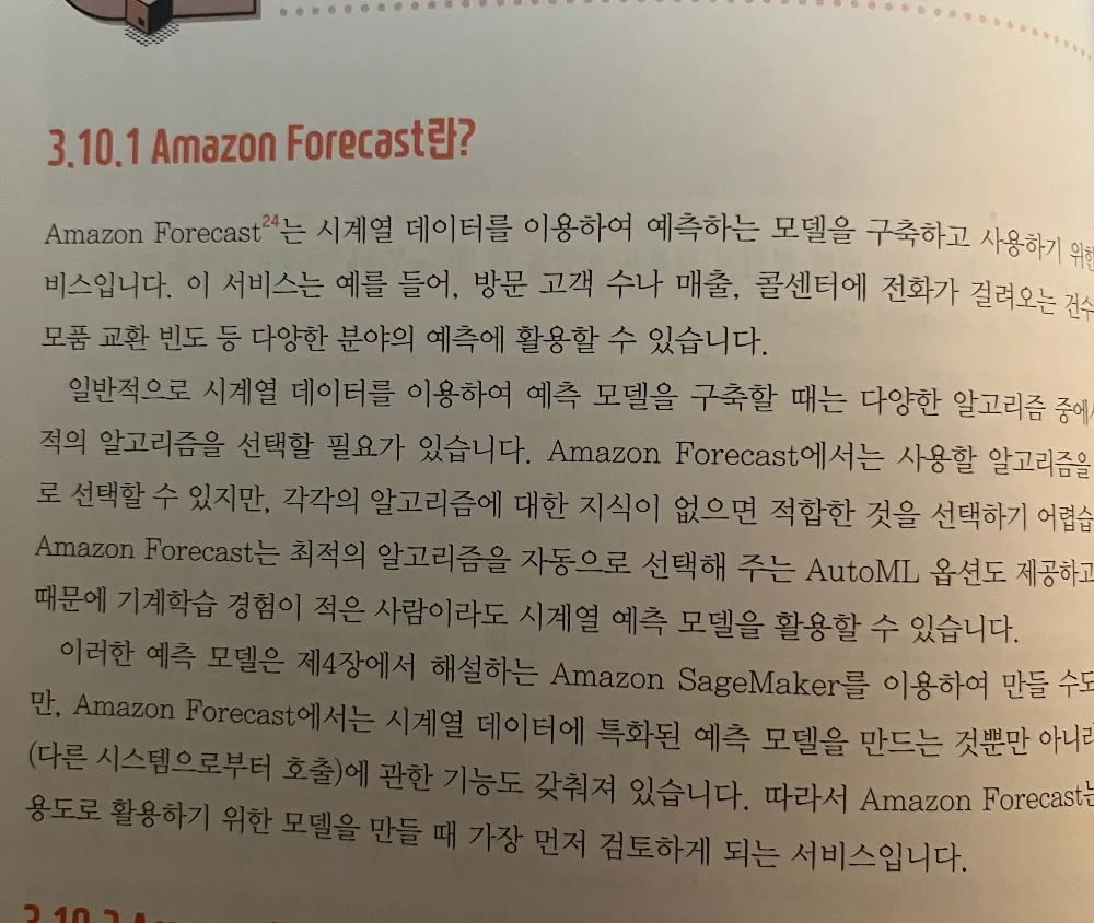 Amazon Forecase를 사용하면 누구나 쉽게 코딩 없이도 시계열 데이터를 이용해 예측 모델을 구현할 수 있다. 책을 읽을수록 접근할 수 있는 기술은 다양하고, 접근의 난도도 그렇게 높지 않음을 깨닫는다. 동시에 결국 가장 큰 문제는 기술을 접근하고자 한 나의 의지에 있음을 반성한다.