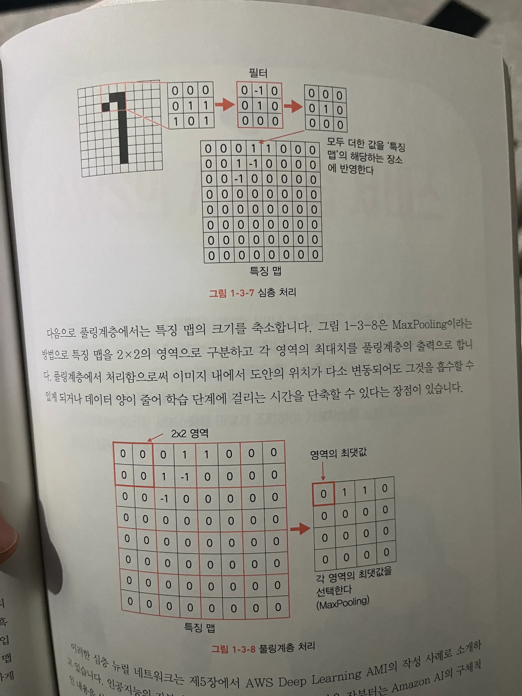 풀링계층에서 처리함으로써 이미지 내에서 도안의 위치가 다소 변동되어도 그것을 흡수할 수 있게 되거나 데이터 양이 줄어 학습 단계에 걸리는 시간을 단축할 수 있다는 장점이 있습니다.
