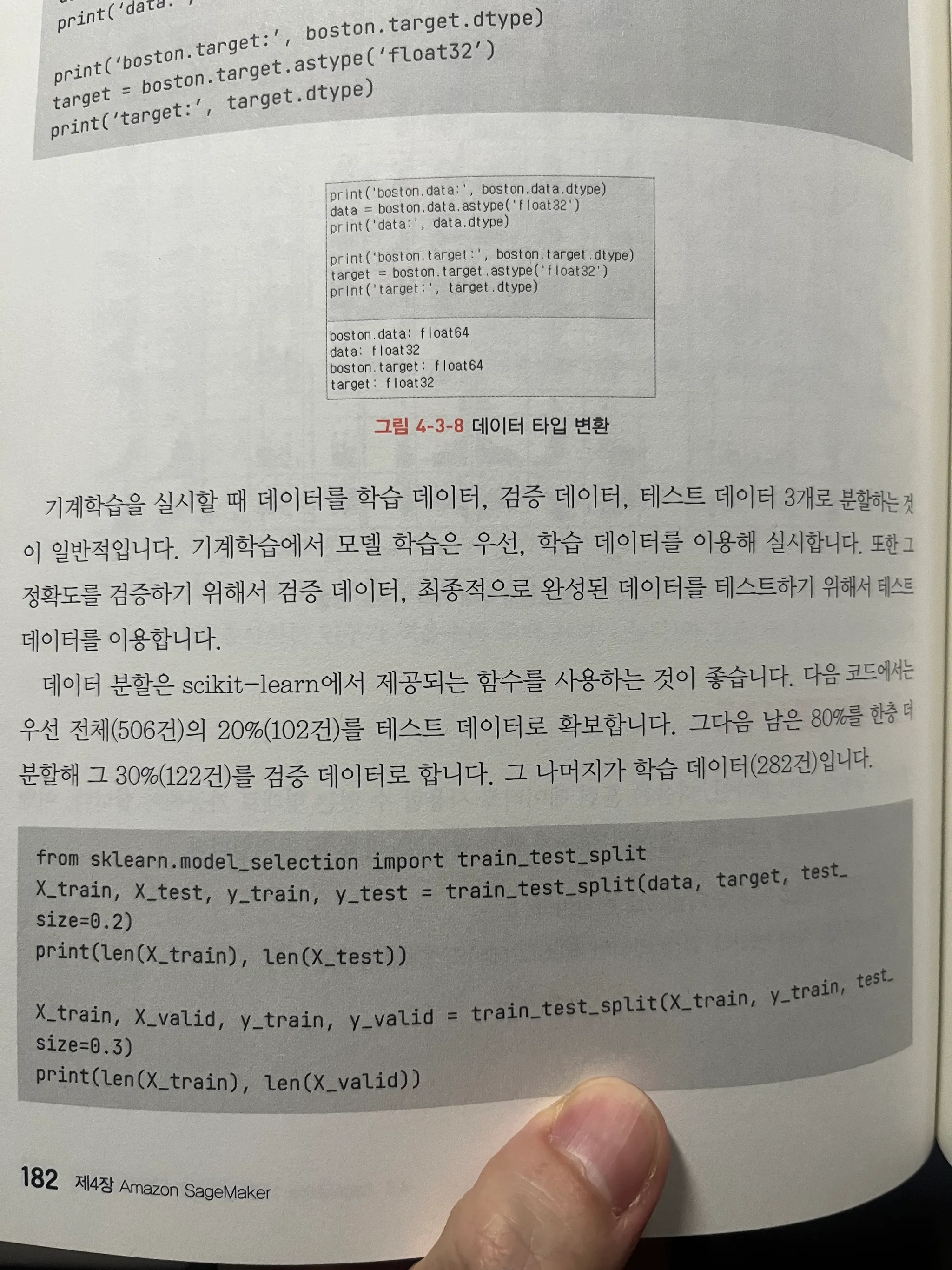 머신 러닝 모델을 위해서 데이터를 학습 데이터, 검증 데이터와 테스트 데이터로 나눠야 한다. 학습이 됐다고 해도 검증이 통과되지 못하면, 모델은 의미가 없어진다. 애초에 잘못 학습된 모델이니깐.