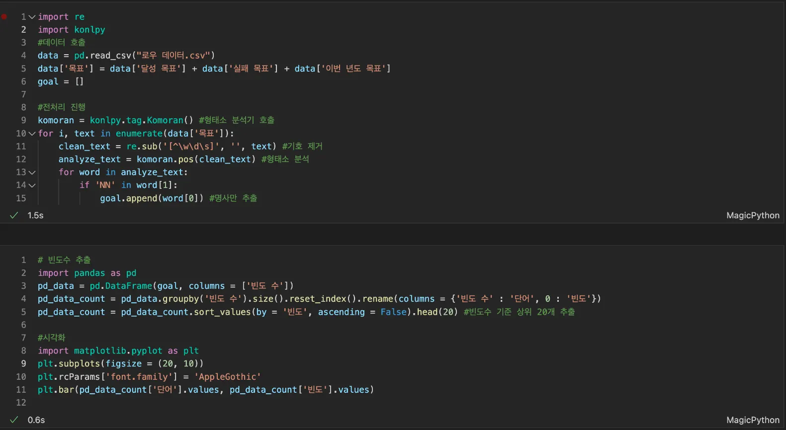 설문 조사 데이터에서 잠재 유저의 응답 데이터에서 Python Libaray인 KoNLPy를 활용해 키워드를 추출했습니다.