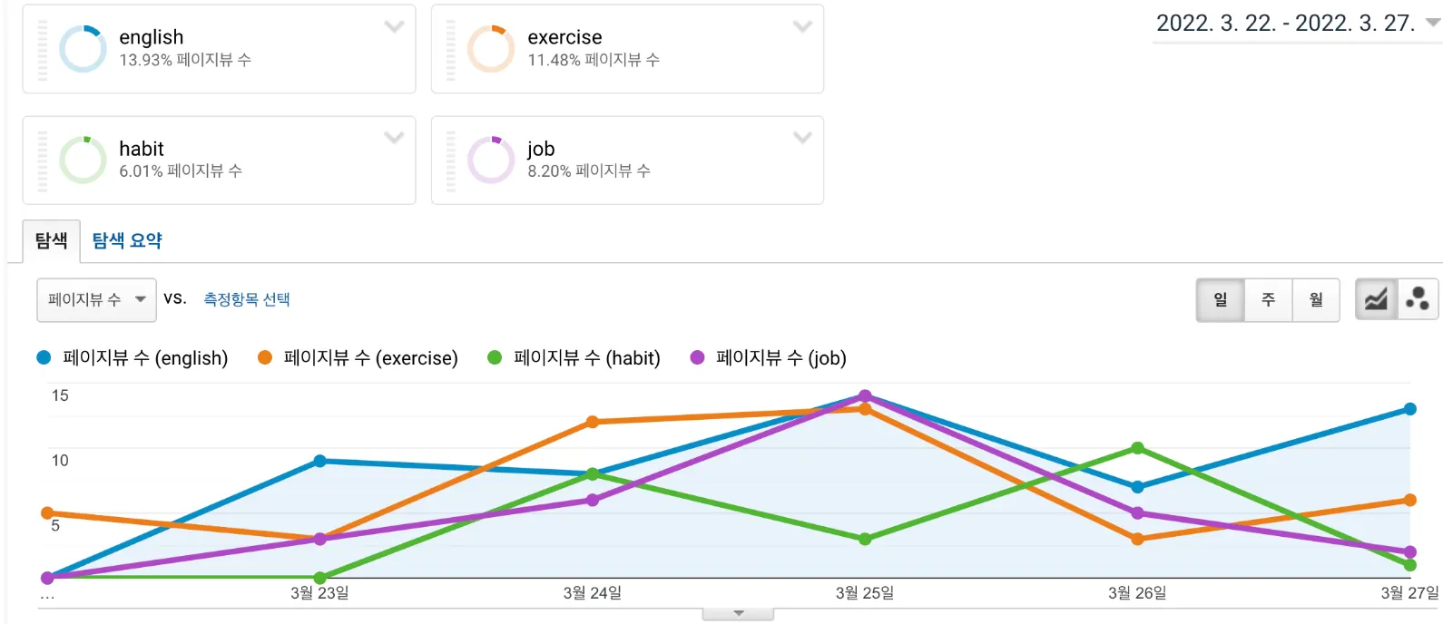 집행한 광고의 CTR 데이터를 보면, 습관 개선이 압도적으로 높고, 그 뒤로 영어 공부와 운동이 높은 걸 확인할 수 있었습니다.