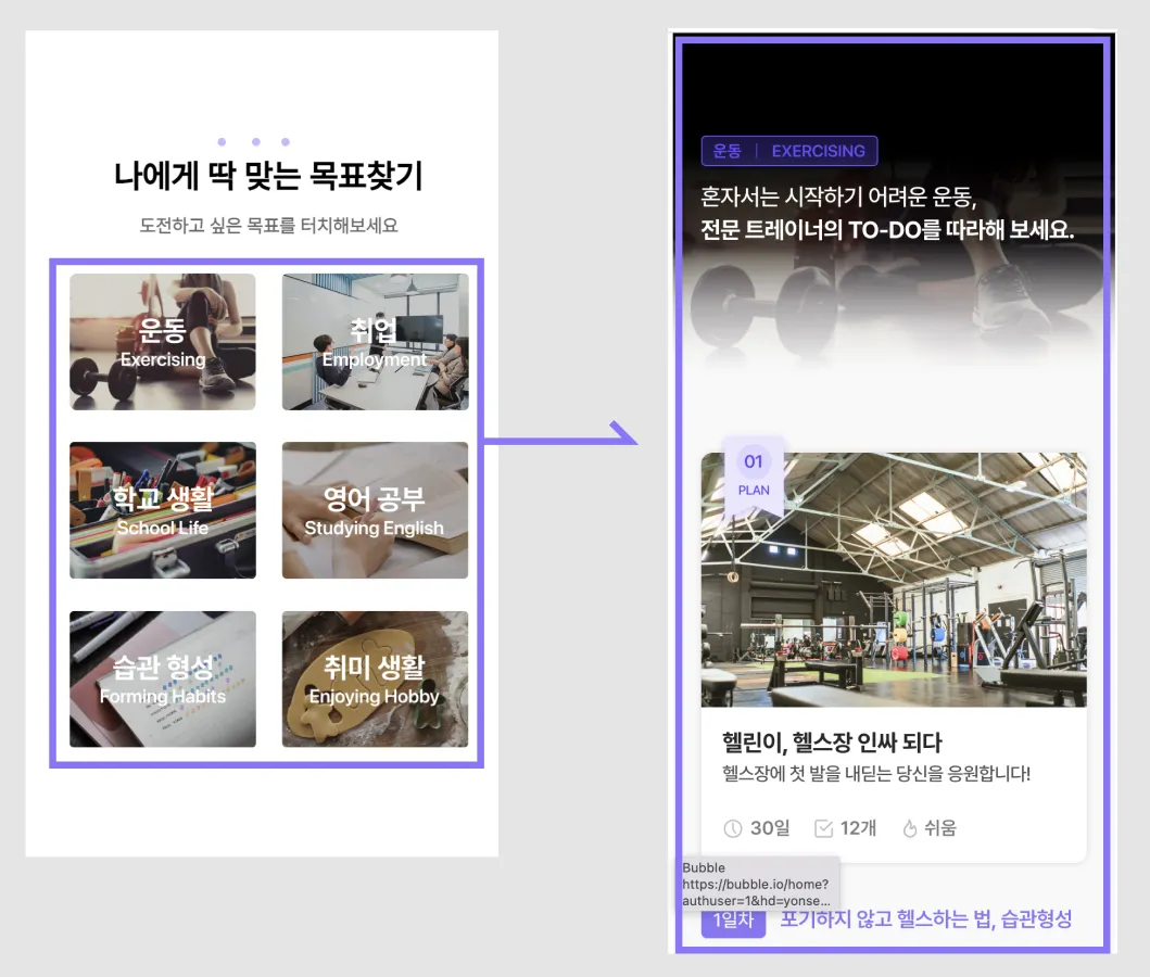 콘텐츠의 제공 방식은 투두리스트를 차용하는 것으로 서비스를 기획했지만, 어떤 콘텐츠의 도메인을 집중해야 할지 확정하지 못했습니다.