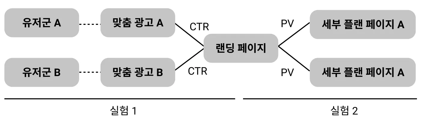 특정 학습 도메인에 관심 있는 사람들을 대상으로 SNS 타겟 광고를 집행해 광고 CTR 데이터를 확인하고, 이들이 웹사이트에서 어떠한 행동 패턴을 보이는지를 확인하는 방식으로 실험을 설계했습니다.