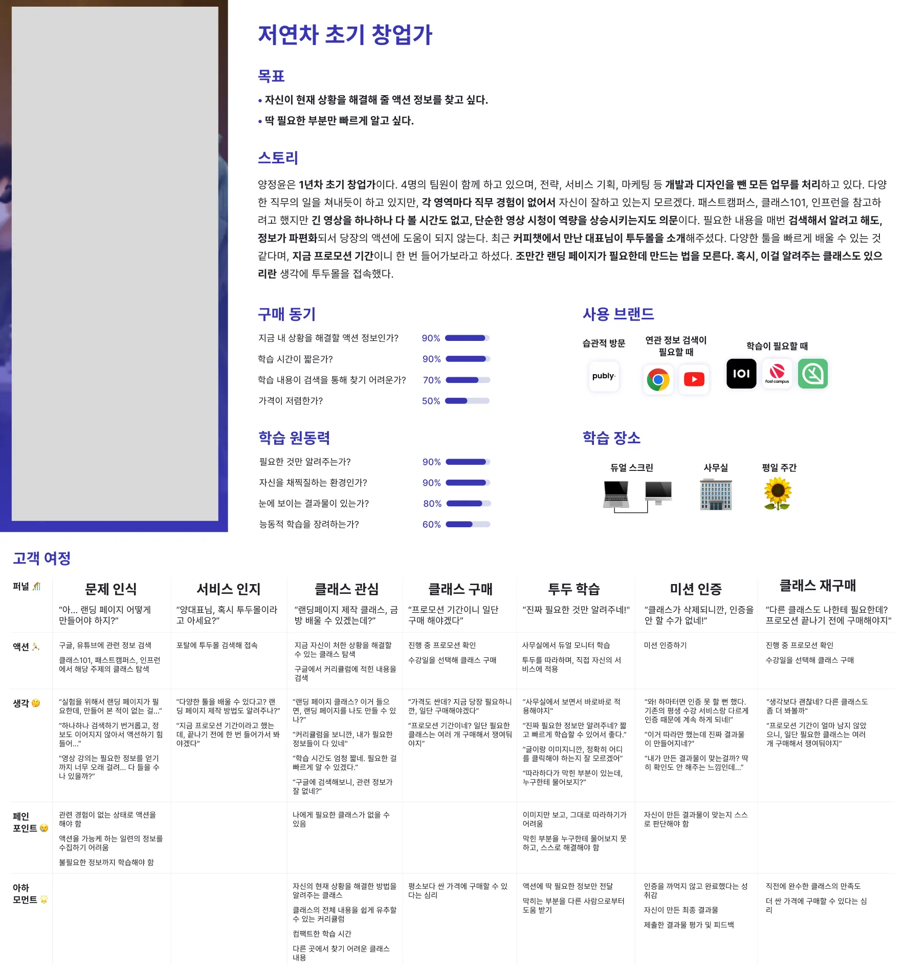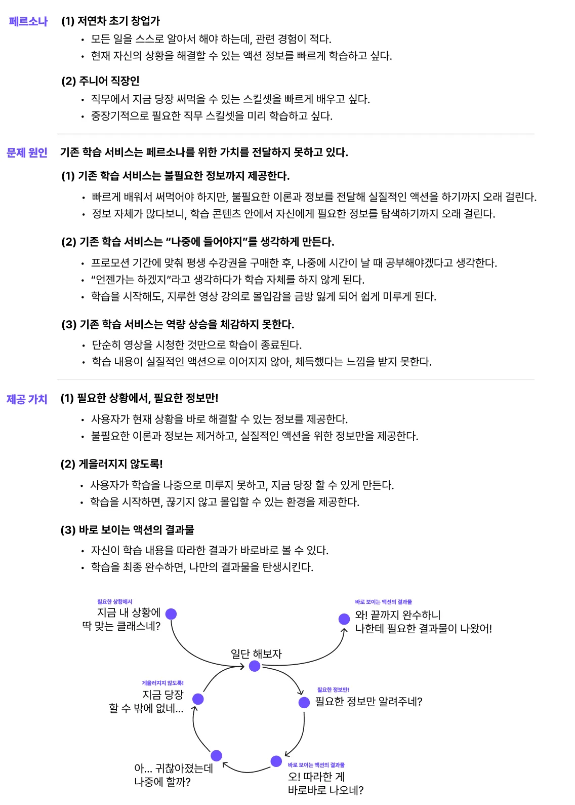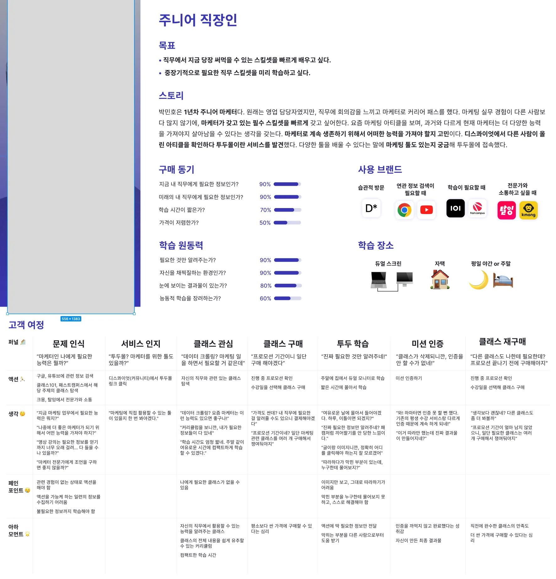 구매 및 학습 데이터를 봤을 때 현재 핵심 타겟은 주니어 직장인이며, 이들에 대한 정보는 기존의 원페이지 선언문에 존재하지 않았습니다.