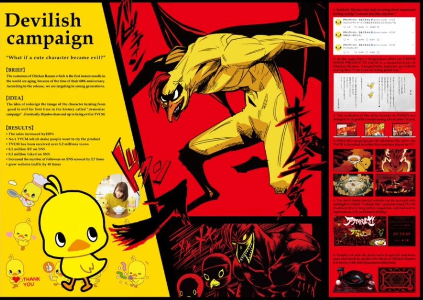 닛산 식품이 '치킨라면' 런칭 60주년을 기념해, 젊은 소비자들을 공략하기 위해 매운맛 김치 치킨 라멘을 출시하면서, 재밌는 디지털 캠페인을 함