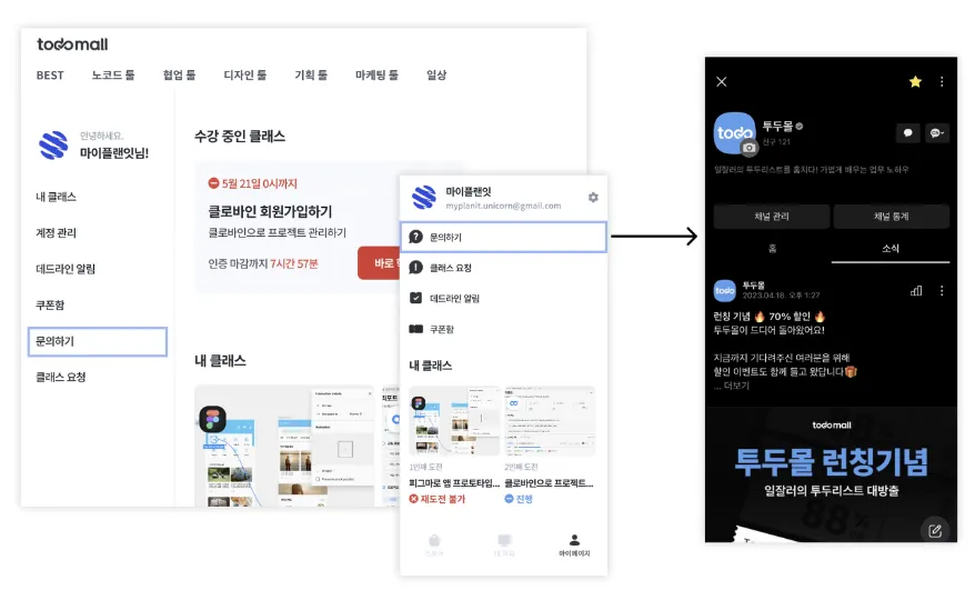투두몰에서 유저가 자신의 이야기를 할 수 있도록 [문의하기] 탭을 운영 중입니다.
