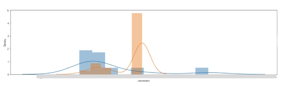 일별 구매 전환율의 분포도를 히스토그램으로 그려본 결과, 구매 전환율이 몰려 있는 Peak 지점이 우측으로 크게 이동된 걸 볼 수 있습니다.