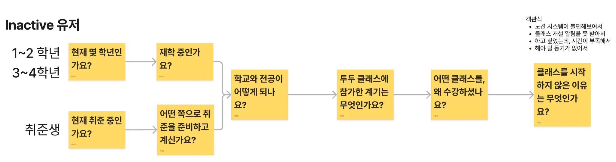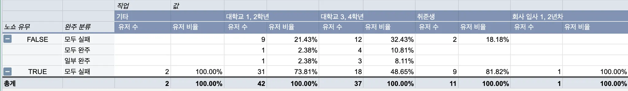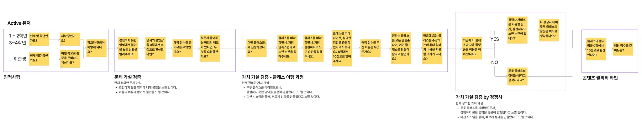 MVP 서비스 실험 을 통해 정량 데이터를 수집했지만, 해당 데이터만으로 확인 가능한 인사이트나 가설의 검증 수준은 한계가 있습니다. 따라서, 정량 데이터를 기준으로 유저 세그먼트를 나누고, 인터뷰를 진행하기로 했습니다.