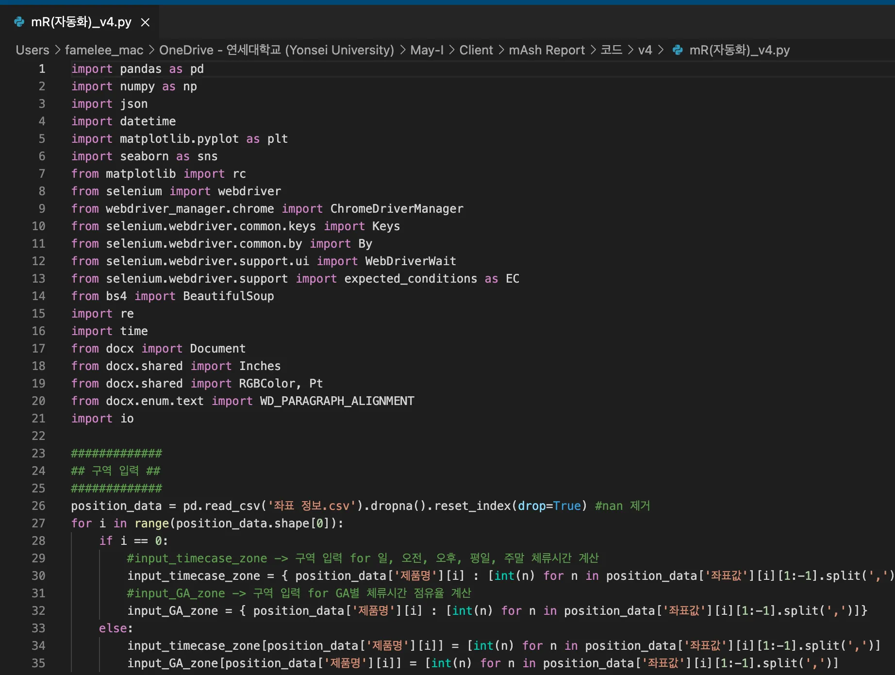 수기 레포트의 스케일업을 위해, 코딩을 활용한 레포트 자동 생성을 하게끔 만들었습니다.