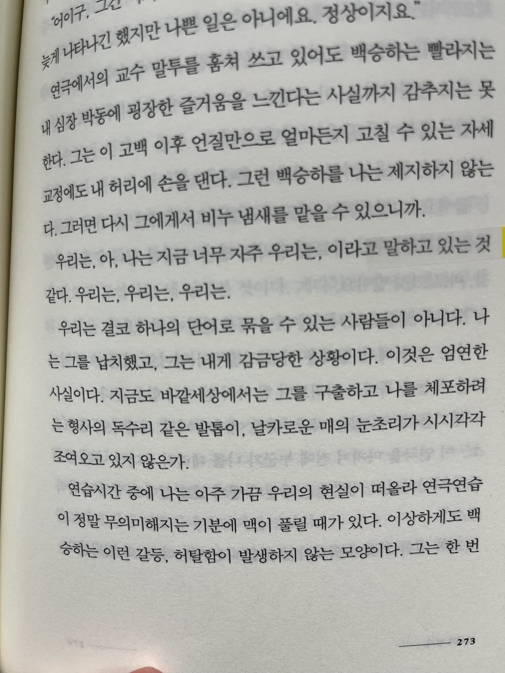 우리는, 아, 나는 지금 너무 자주 우리는, 이라고 말하고 있는 것 같다. 우리는, 우리는, 우리는.