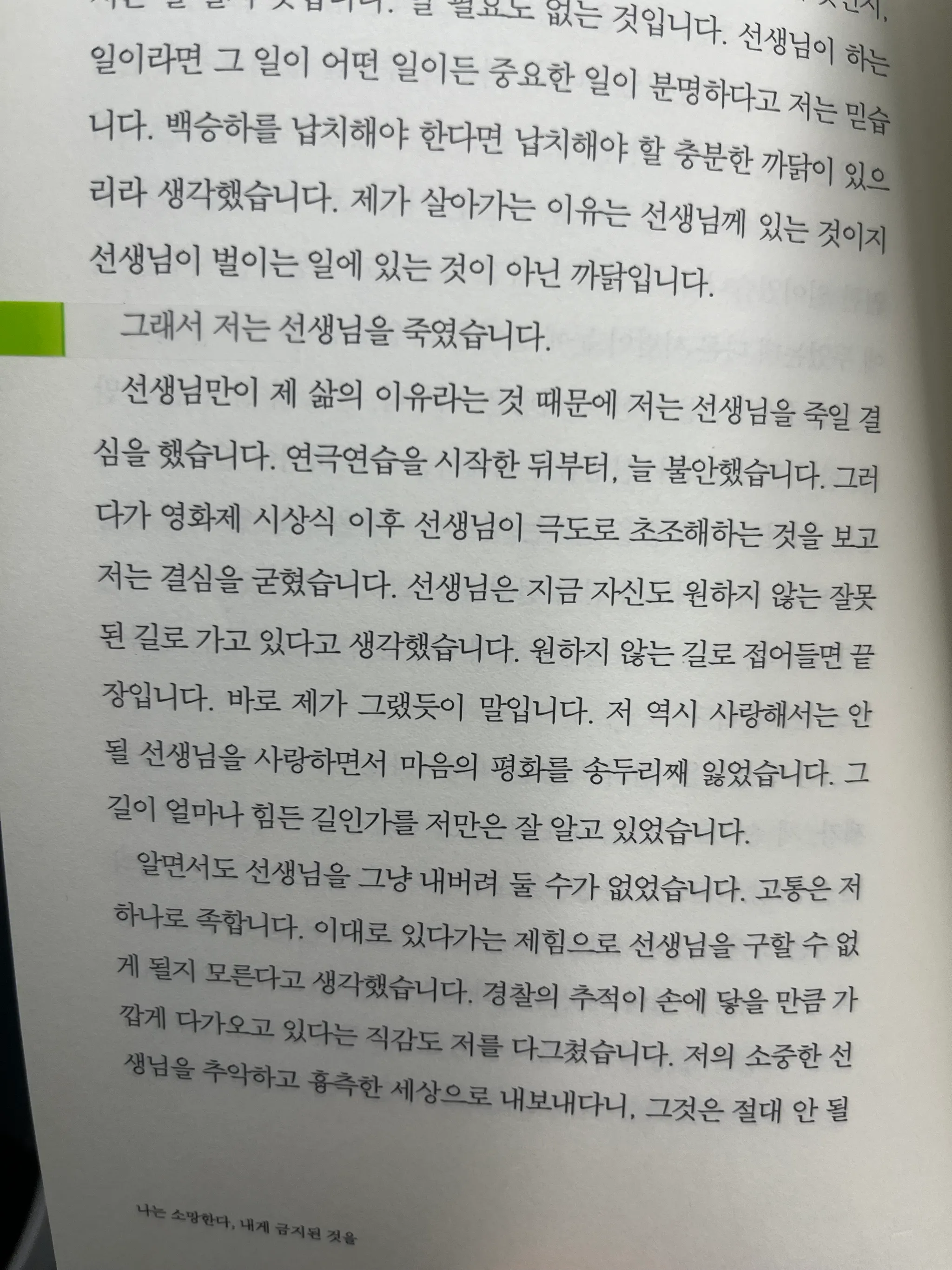 그래서 저는 선생님을 죽였습니다 … 선생님은 지금 자신도 원하지 않는 잘못 된 길로 가고 있다고 생각했습니다. 원하지 않는 길로 접어들면 끝장입니다.