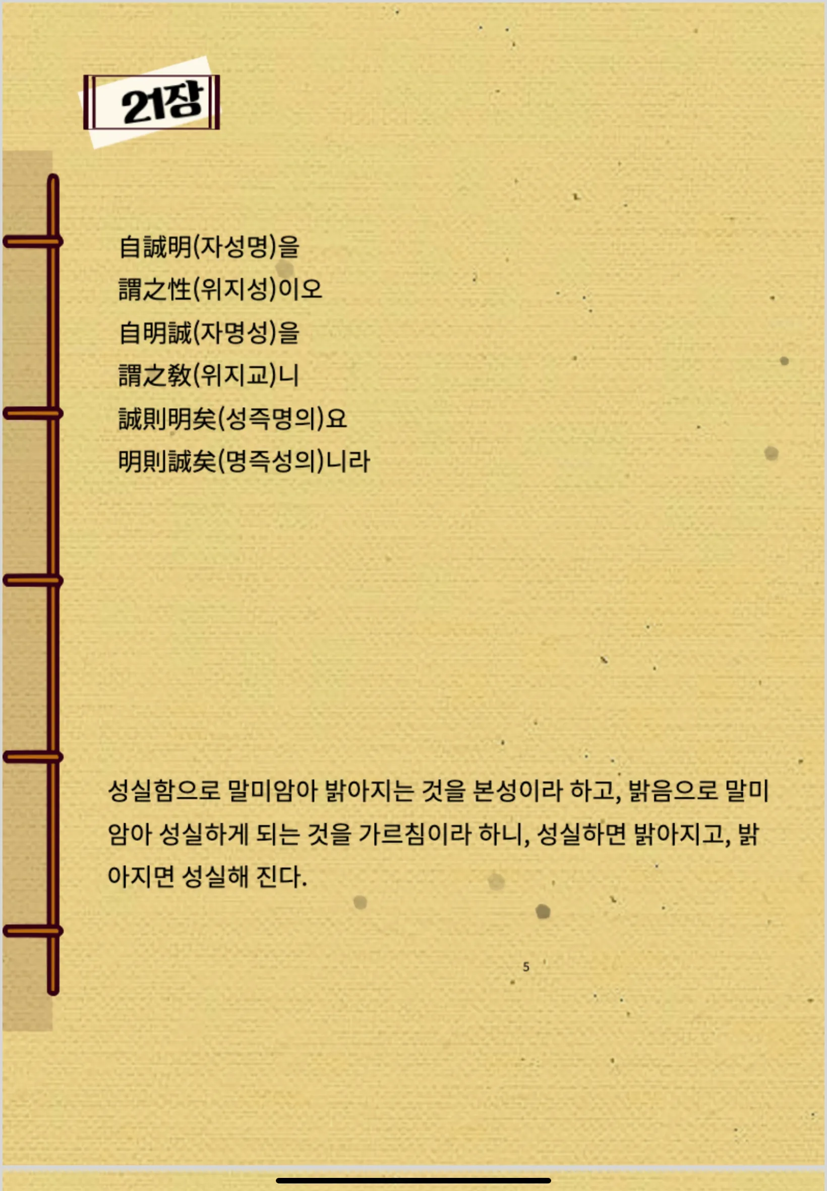 성실함으로 말미암아 밝아지는 것을 본성이라 하고, 밝음으로 말미 암아 성실하게 되는 것을 가르침이라 하니, 성실하면 밝아지고, 밝아지면 성실해 진다.
