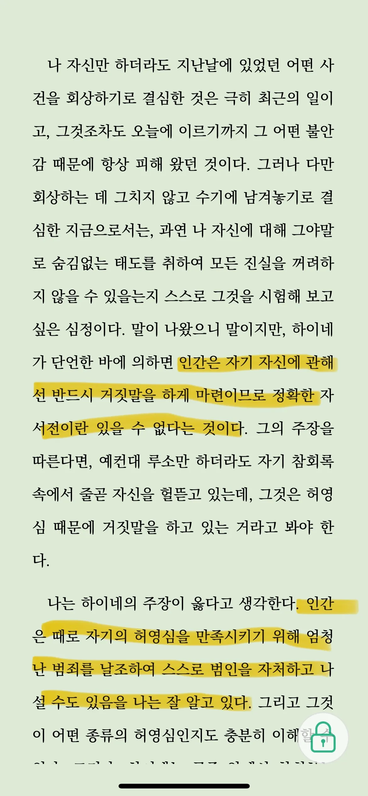 인간은 자기 자신에 관해선 반드시 거짓말을 하게 마련이므로 정확한 자서전이란 있을 수 없다는 것이다