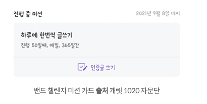 챌린지 미션 카드가 있음 ⇒ 정해 놓은 목표를 매일 인증