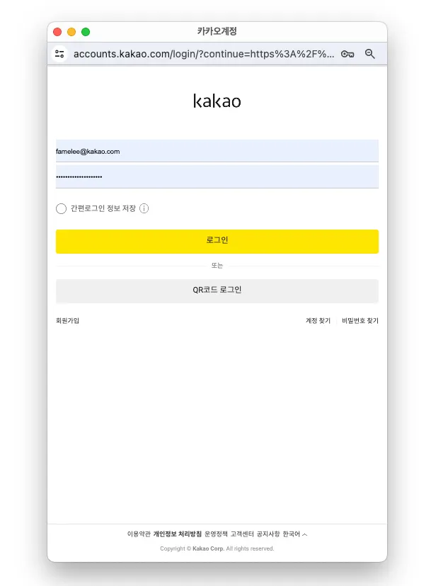 아래 링크에서 카카오 개발자 계정을 생성합니다.