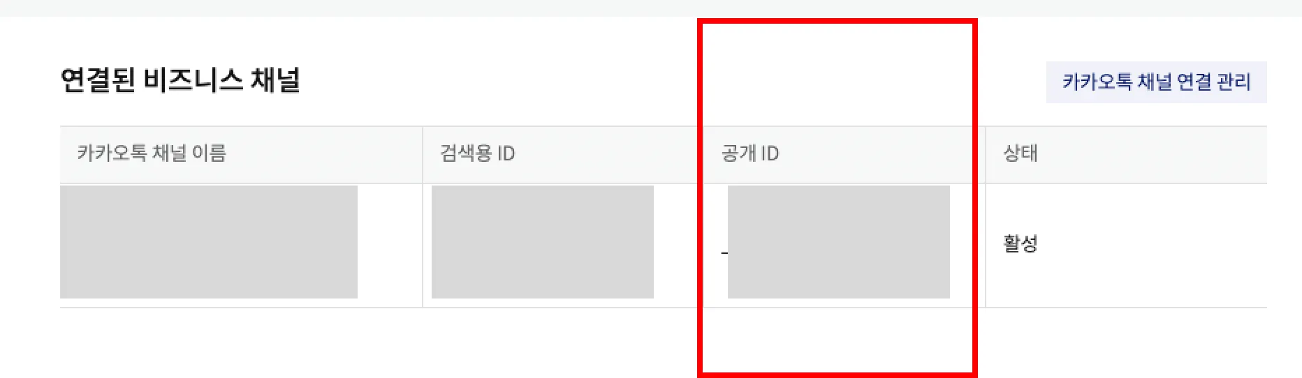 연결이 완료됐으면, 공개 ID를 확인할 수 있습니다. 해당 Id 값은 플러그인의 액션 이벤트에서 사용됩니다.