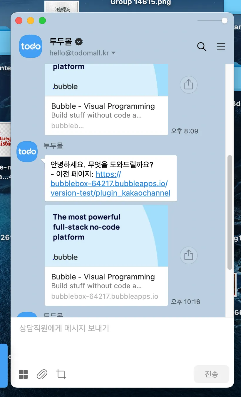 카카오 채널을 사용하면 (1) 채널 추가를 통해 유저에게 마케팅을 진행할 수 있고 (2) 채널을 통해 유저와 채팅함으로써 CS 관리도 편리해집니다. 버블에서 카카오 채널과 관련된 플러그인이 없기에 개발했습니다.