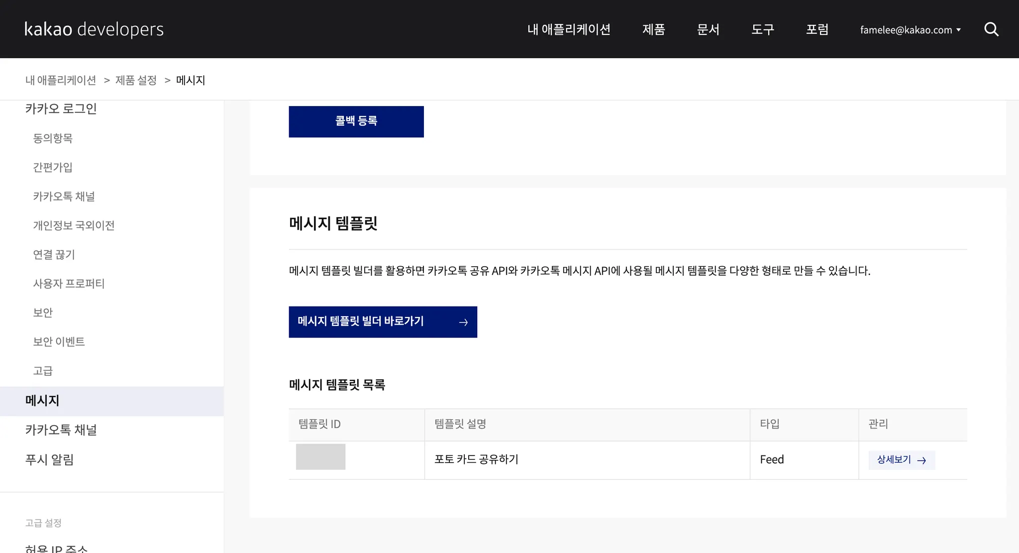 생성된 템플릿의 상단에서 템플릿 ID를 확인할 수 있습니다. 이때, 계정 ID와 혼동하지 않도록 주의합니다.
