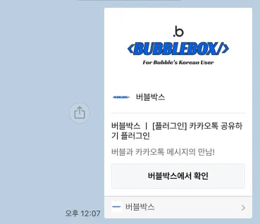 requestUrl | String | 공유할 링크를 https:// 형식으로 입력해주세요. 해당 링크의 메타 태그를 기반으로 메시지가 자동 구성됩니다. (ex) https://bubble.kr