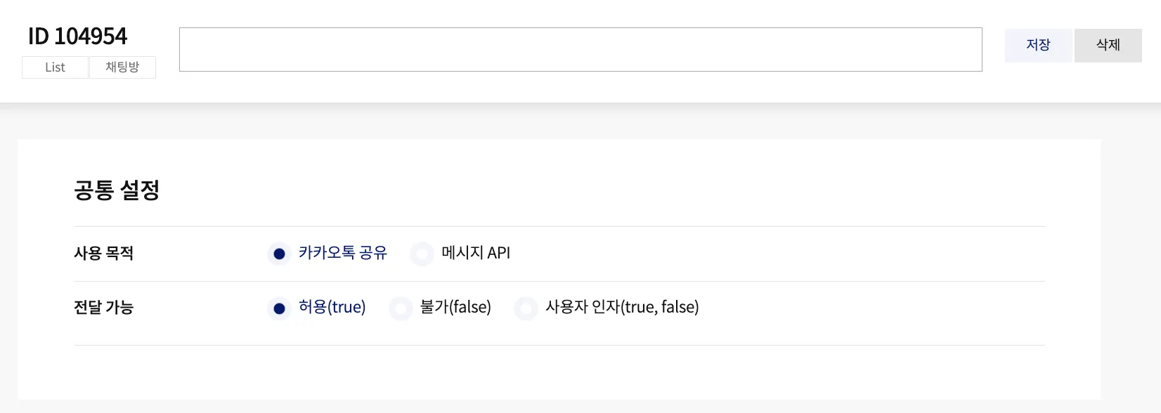 해당 공유 메시지는 텍스트와 버튼 1개로 조합됩니다.