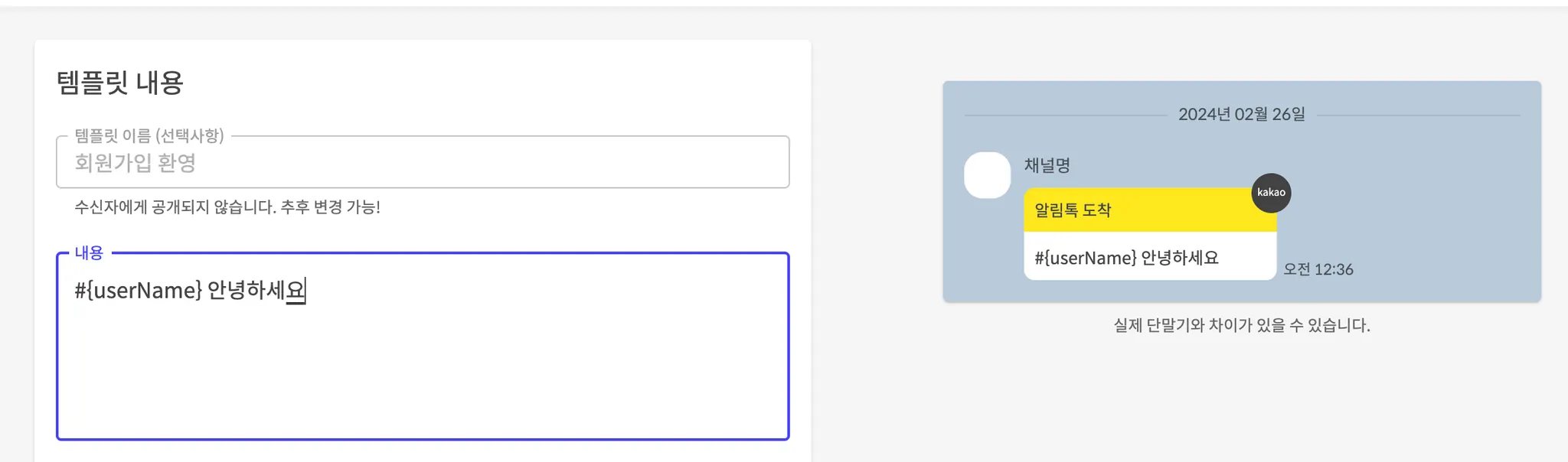 b. 카카오 알림톡 템플릿에 변수 설정하기