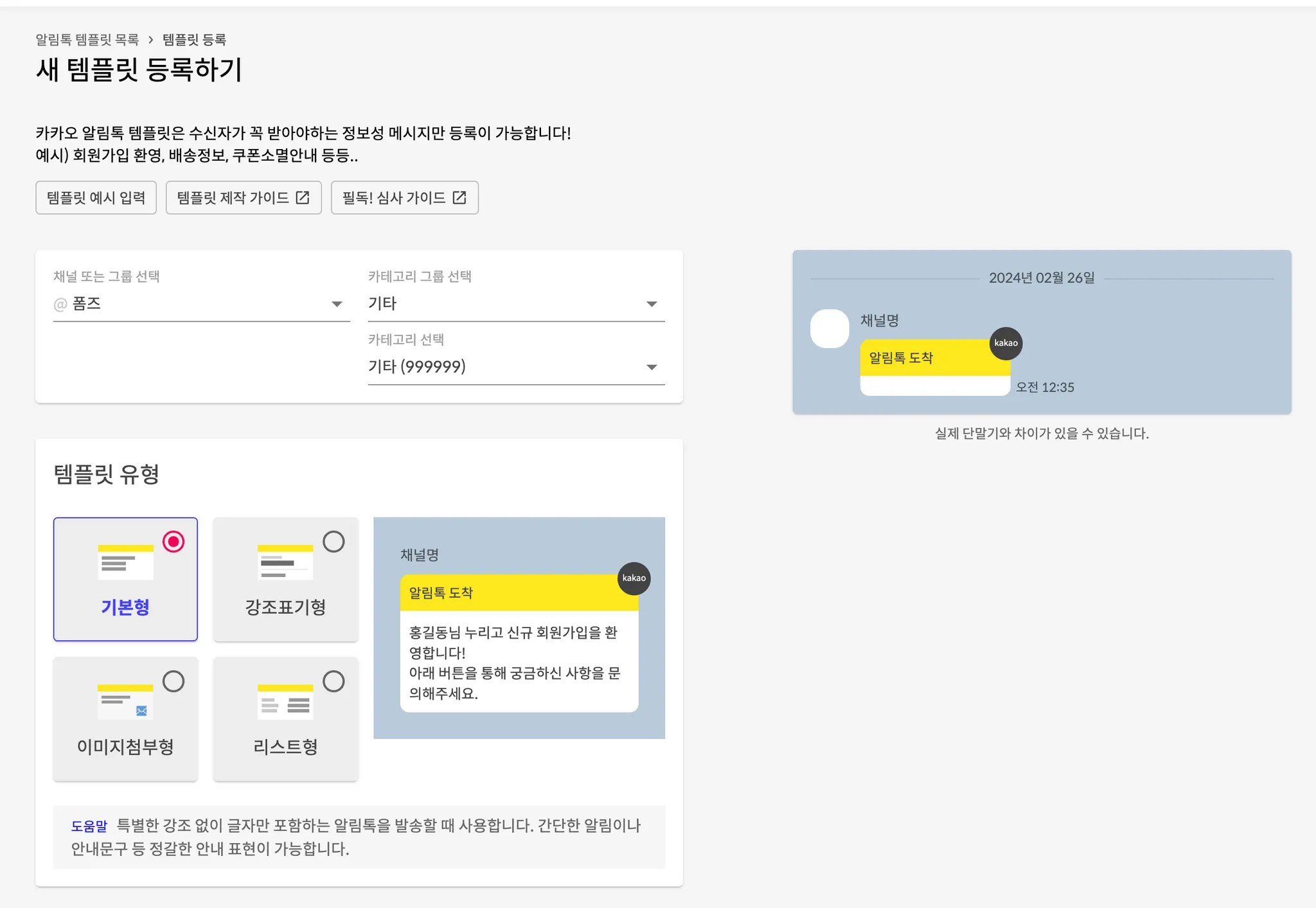 문자와 카카오 알림톡, 각각을 위해 준비해야 하는 부분이 다르며 각 가이드를 참고해주세요