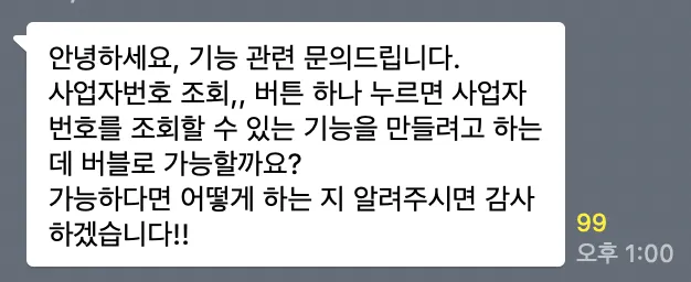 버블로 기업 고객을 대상으로 서비스를 만드는 분들 중에 사업자번호 조회 기능이 필요한 분이 있는 거 같아서 개발했습니다.