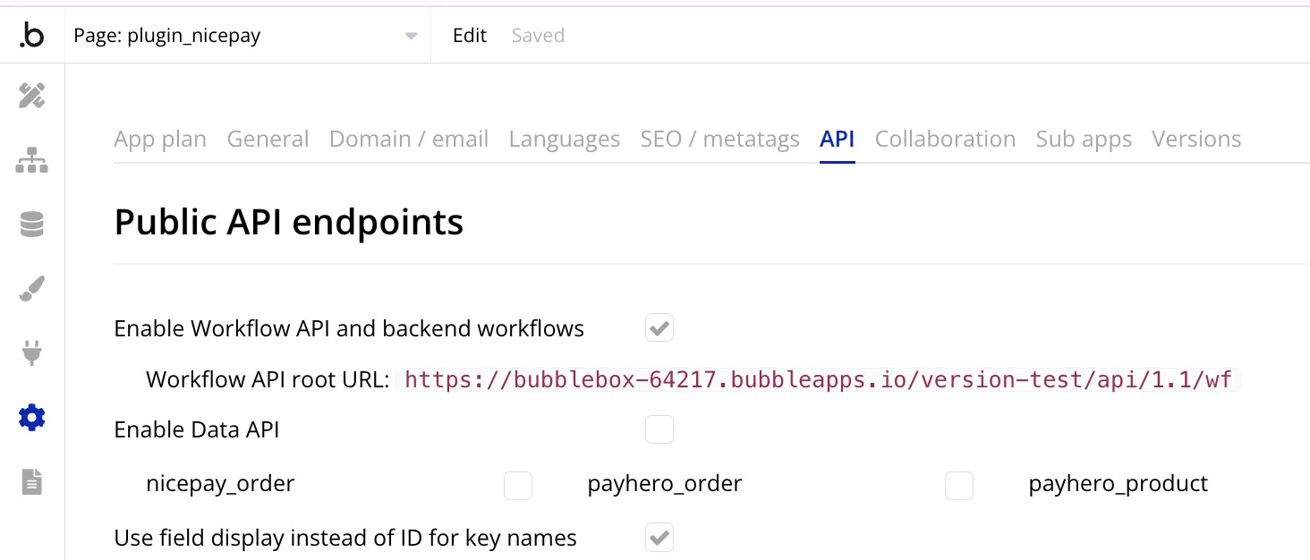 앞선 설정은 버블의 Dev 버전용입니다. 만약 Dev에서 테스트를 모두 성공적으로 완료했으면, Live용으로 변경해야 합니다.